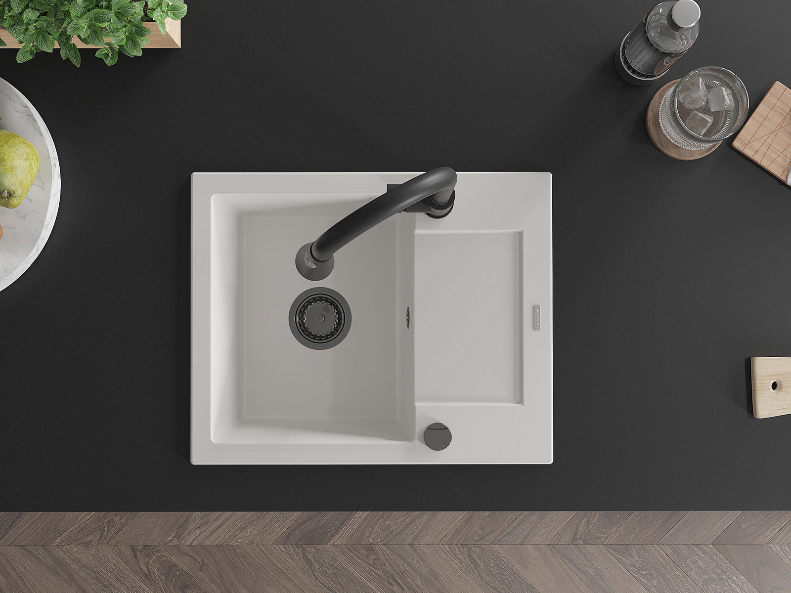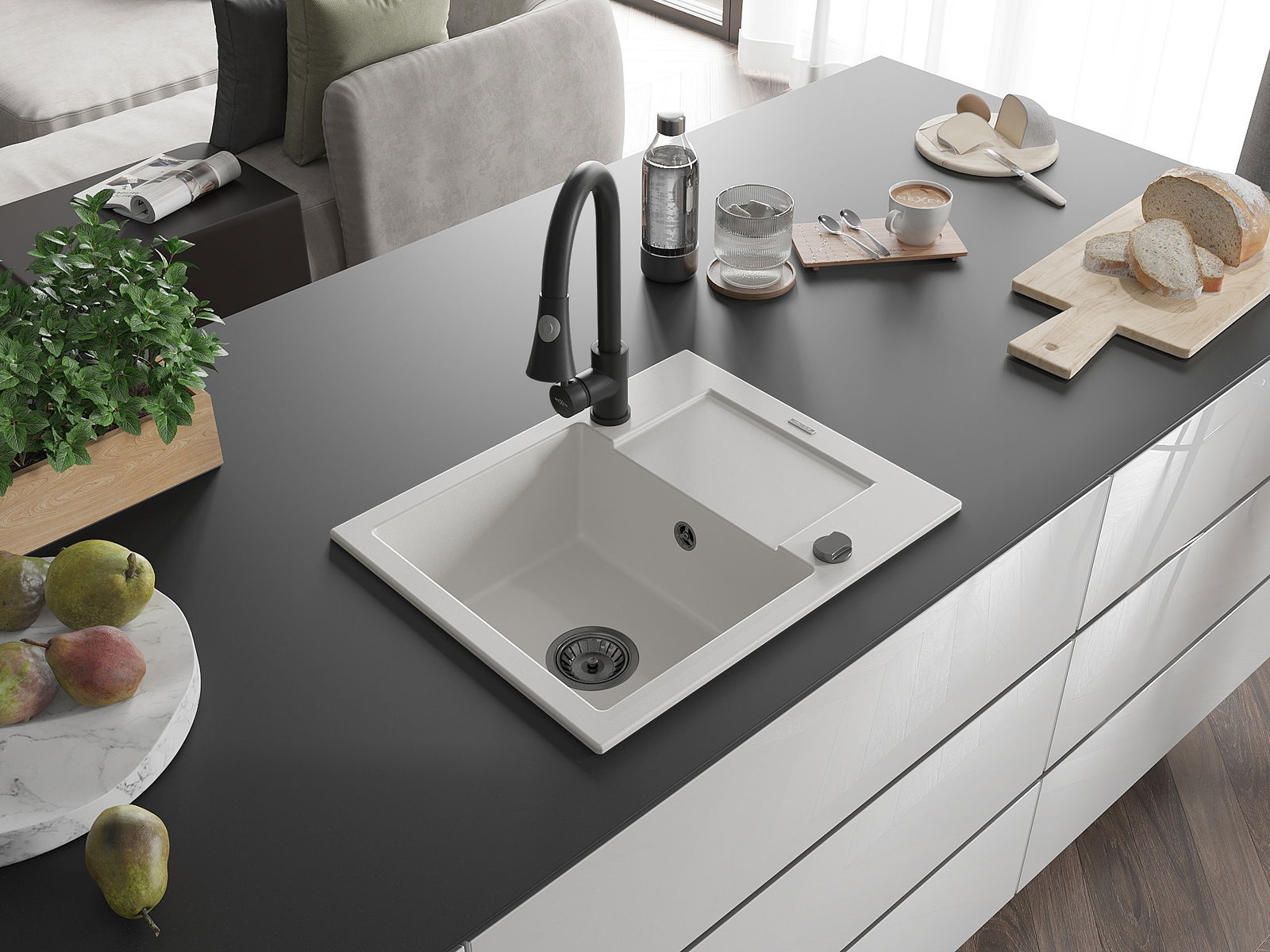 A mosogató magas minőségű gránitból készült. Elegáns, de mindenekelőtt praktikus kiegészítője minden konyhának, függetlenül annak stílusától. A gránit magas minősége és tartóssága hosszú távú használatot biztosít.
