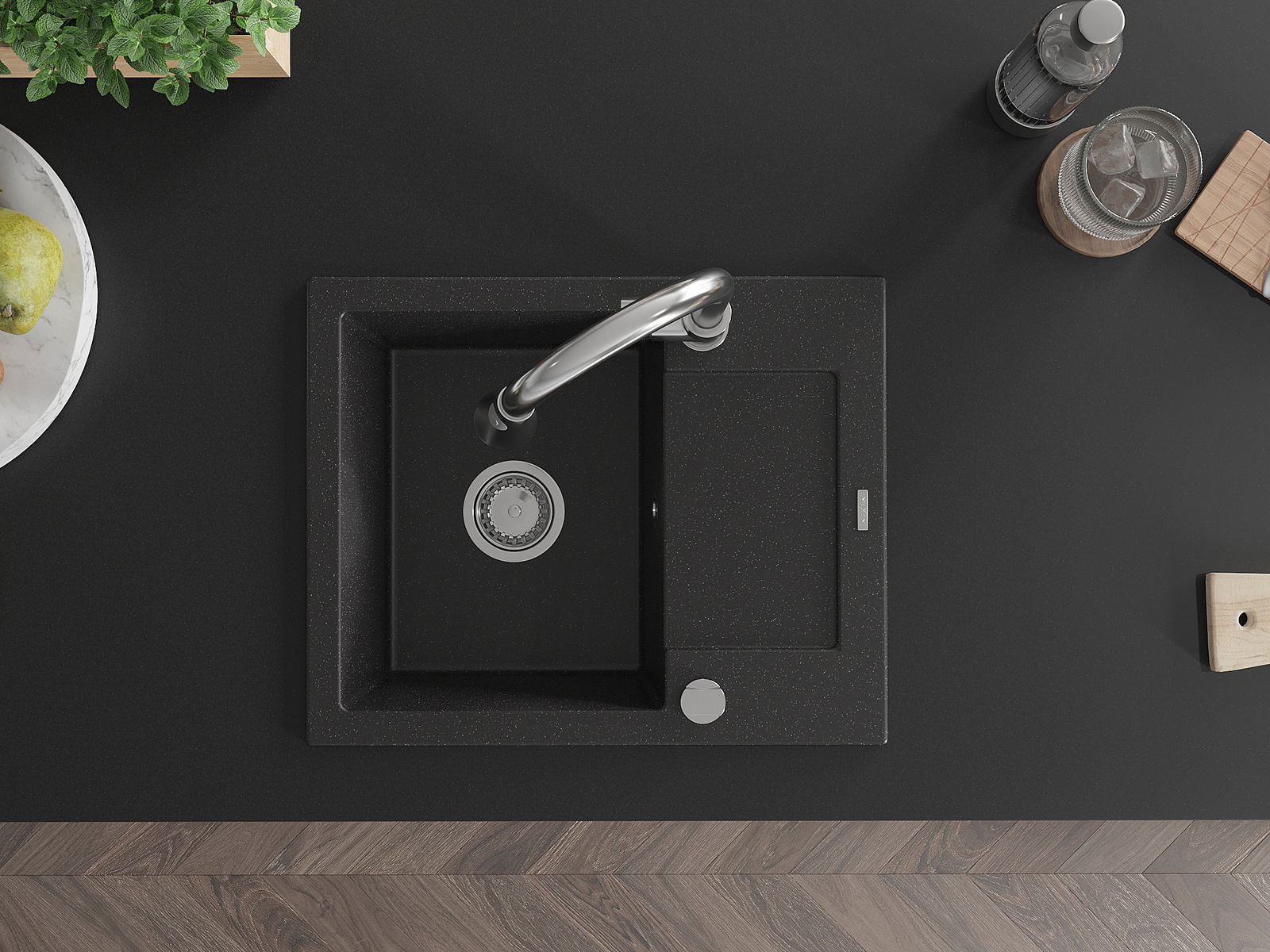 A mosogató kiváló minőségű gránitból készül. Ez egy elegáns és mindenekelőtt minden konyhához praktikus kiegészítés, stílusától függetlenül. A kiváló minőségű és a gránit tartósság biztosítja a sok éves használatát.