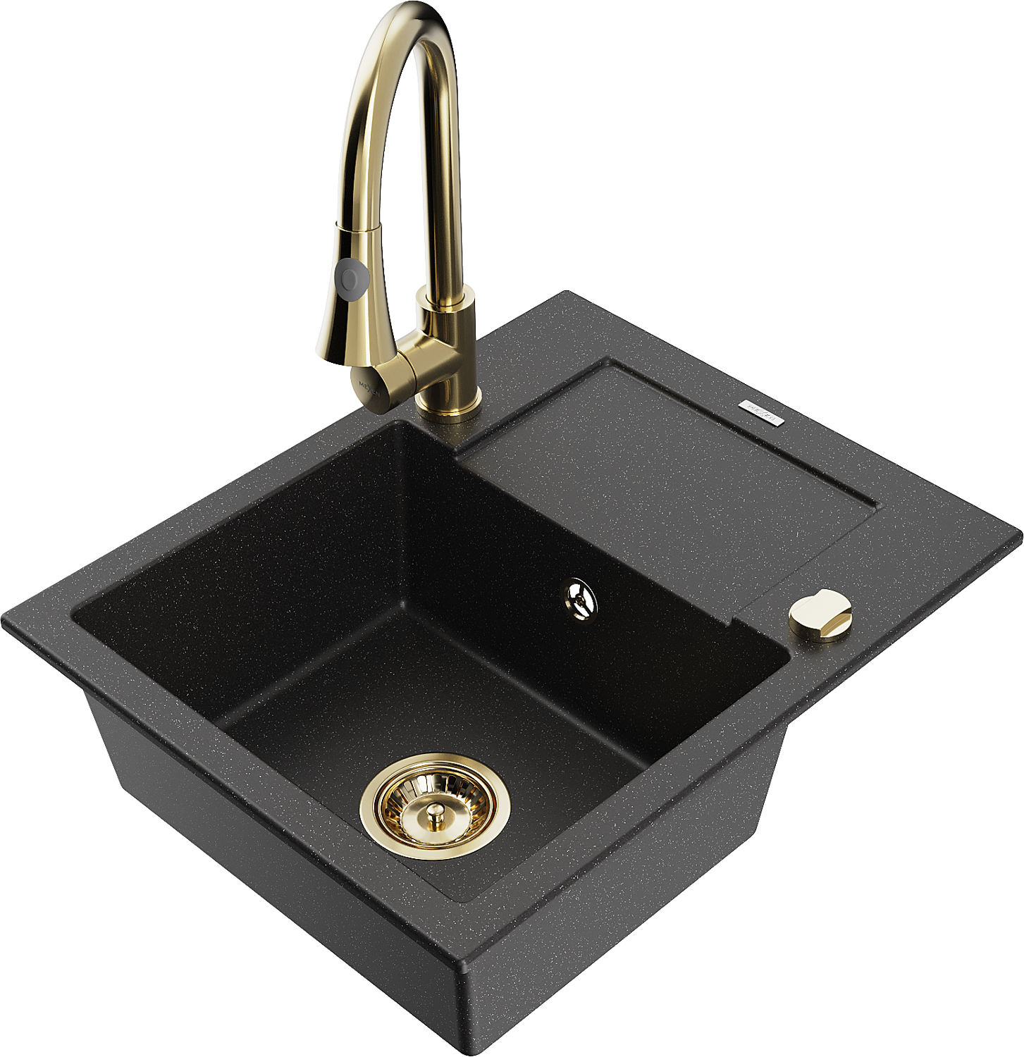 Mexen Enzo 1-medencés gránit mosogató csepptálcával és Elia konyhai csappal, fekete/ezüst metál - 6506-73-670101-50