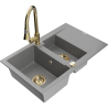 Mexen Gaspar gránit mosogató 1,5 medencés csepegtetővel és konyhai csappal Elia, fehér - 6507-20-670101-50