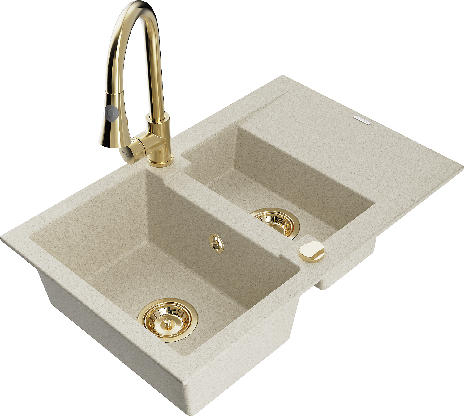 Mexen Gaspar gránit mosogató 1,5-medencés csepegtetővel és Elia konyhai csapteleppel, bézs - 6507-69-670101-50