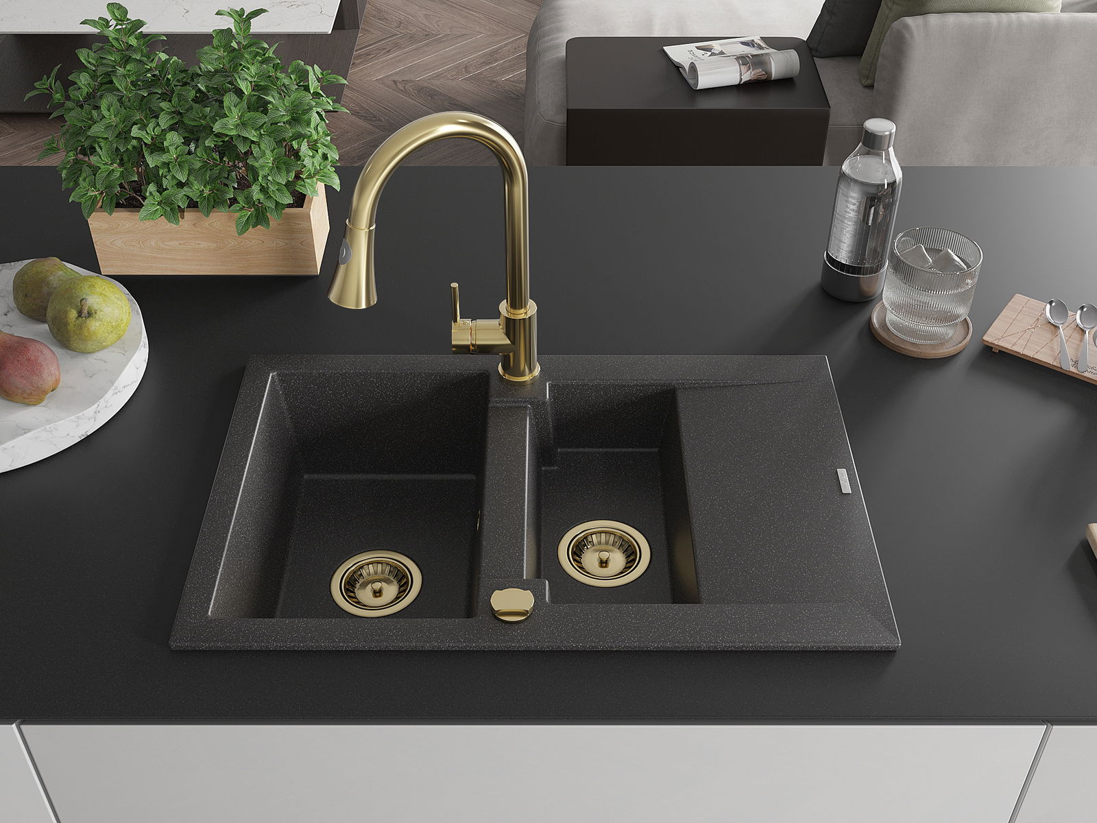 A mosogató kiváló minőségű gránitból készül. Ez egy elegáns és mindenekelőtt minden konyhához praktikus kiegészítés, stílusától függetlenül. A kiváló minőségű és a gránit tartósság biztosítja a sok éves használatát.