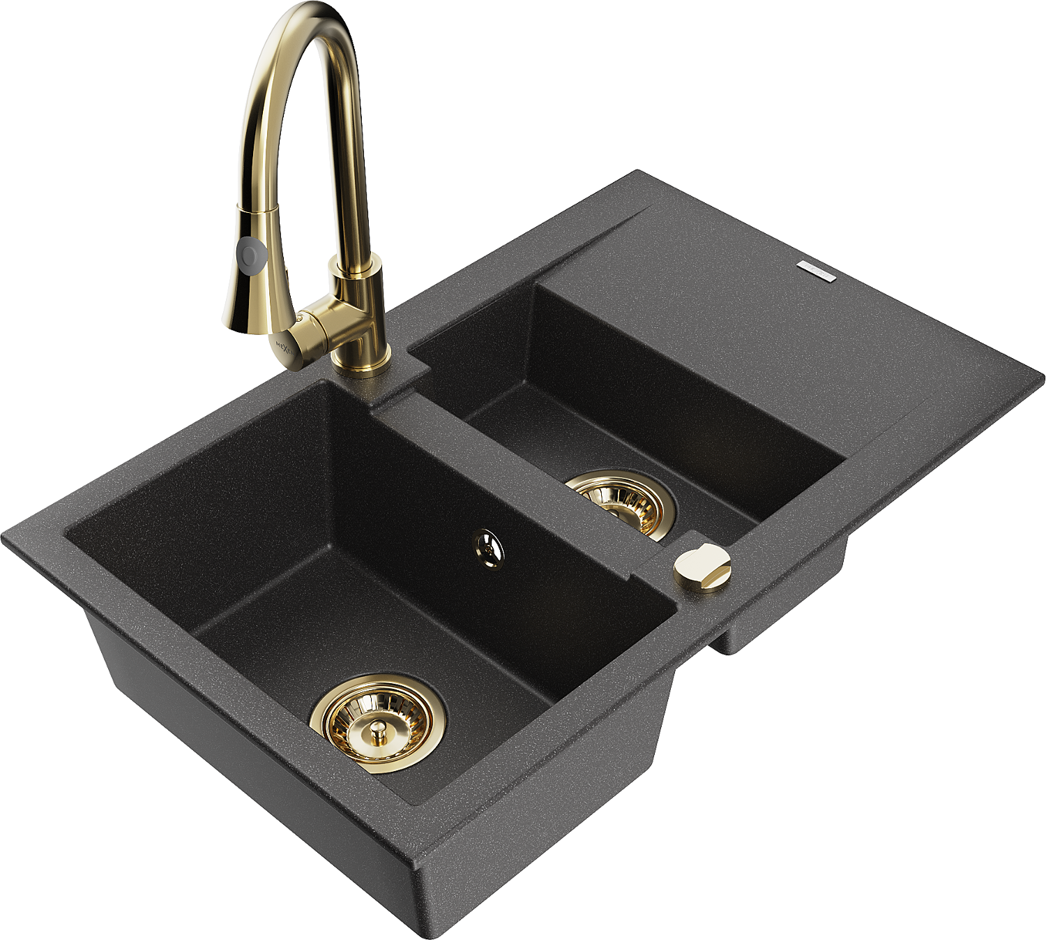Mexen Gaspar 1,5-medencés, csepegtetős gránit mosogató Elia konyhai csapteleppel, fekete pöttyös - 6507-76-670101-50