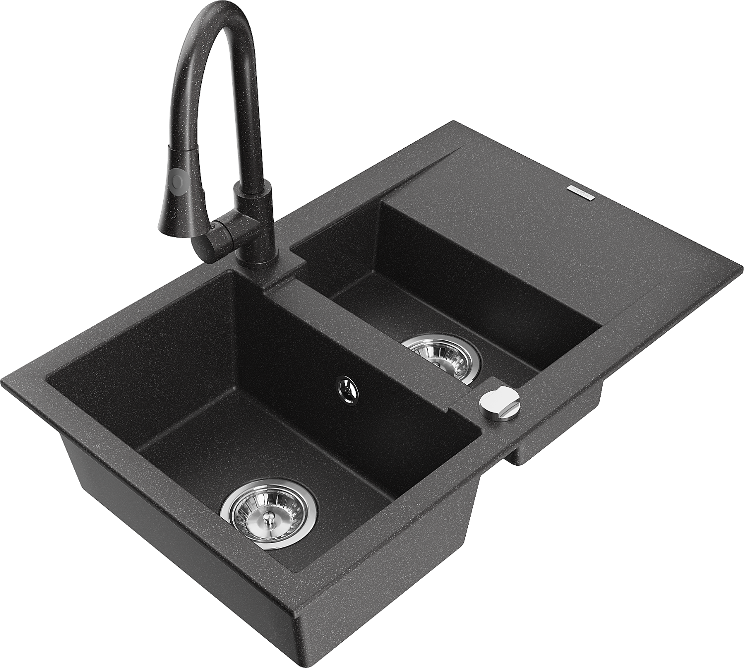 Mexen Gaspar 1,5 rekeszes gránit mosogató csepegtetővel és Elia konyhai csappal, fekete pöttyös - 6507-76-670101-76