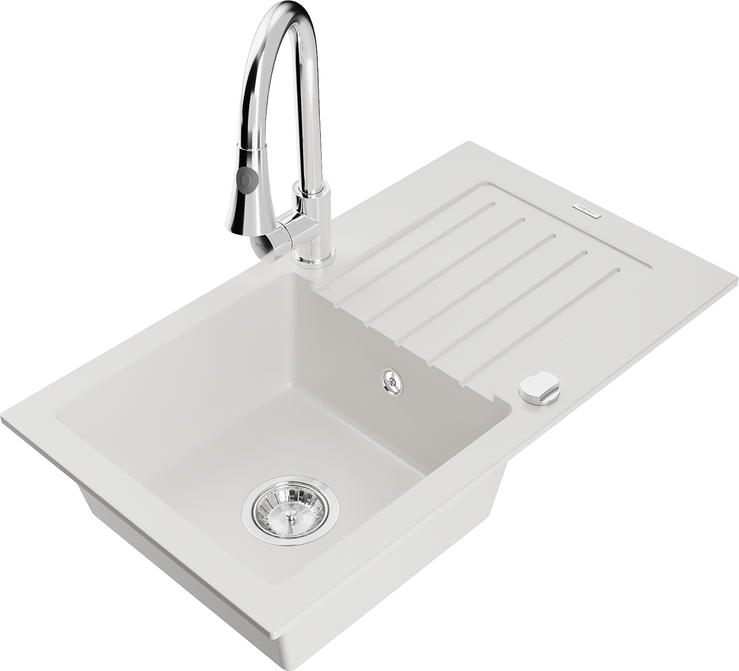 Mexen Pablo 1-medencés gránit mosogató lefolyóval és Elia konyhai csappal, fehér - 6510-20-670101-00