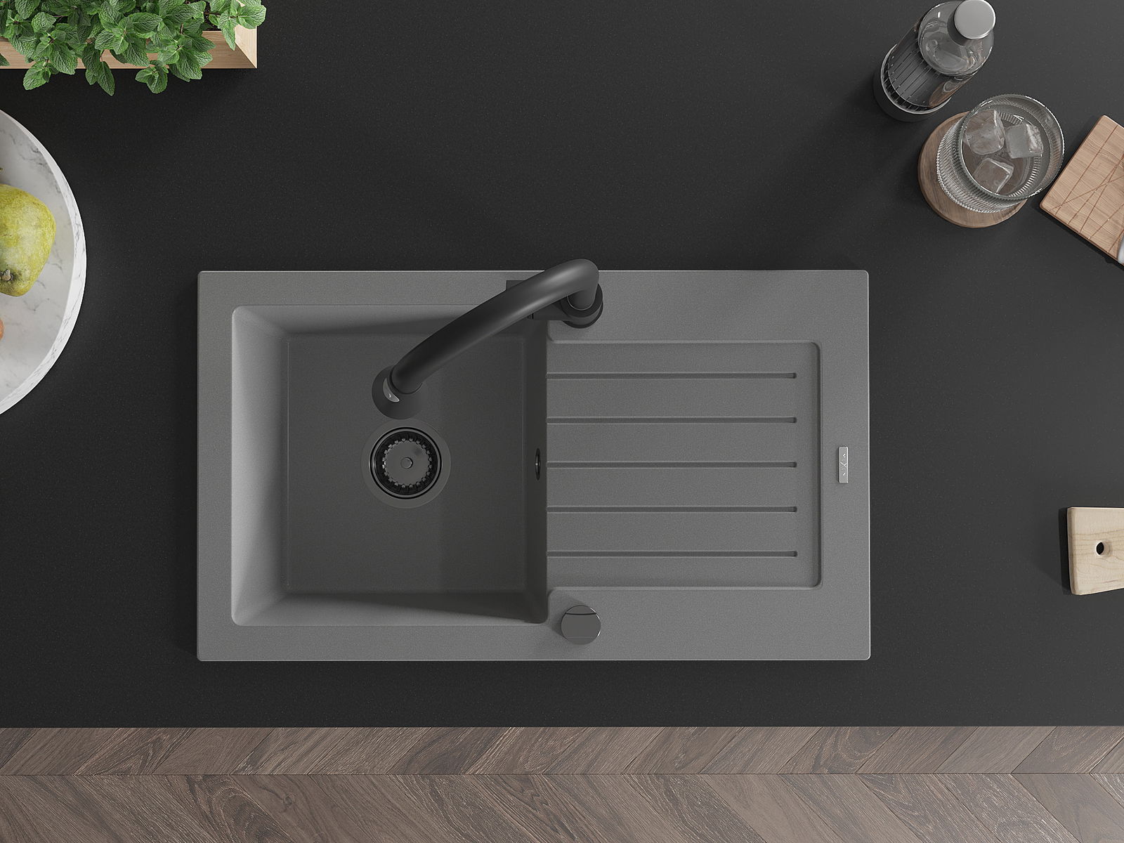 A mosogató kiváló minőségű gránitból készül. Ez egy elegáns és mindenekelőtt minden konyhához praktikus kiegészítés, stílusától függetlenül. A kiváló minőségű és a gránit tartósság biztosítja a sok éves használatát.
