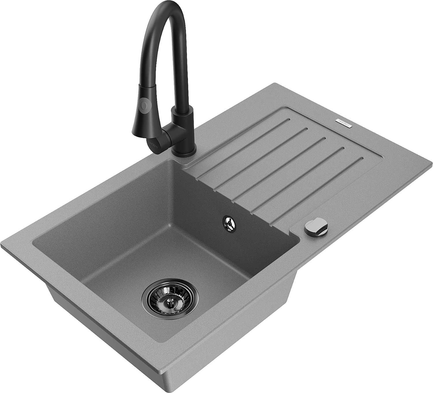 Mexen Pablo 1-medencés gránit mosogató lefolyóval és Elia konyhai csaptelep, szürke - 6510-71-670101-70-B