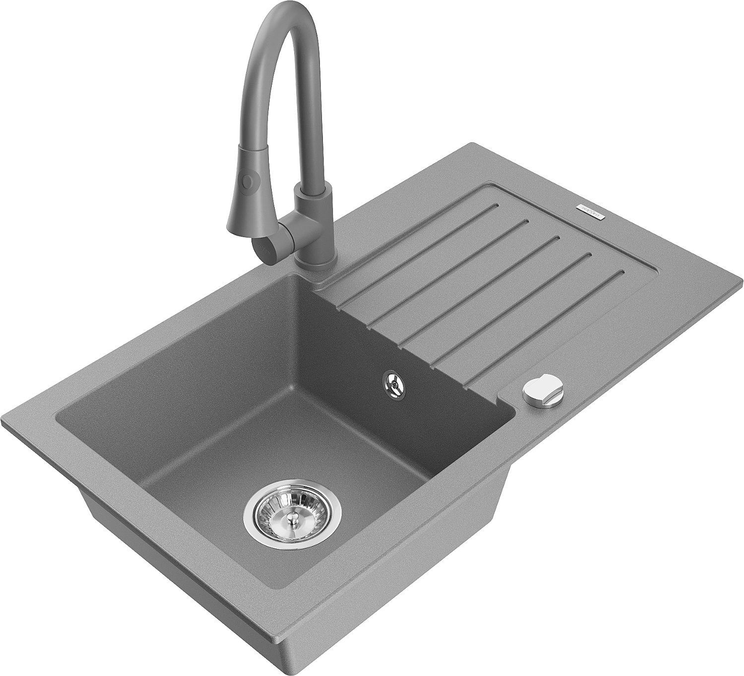 Mexen Pablo egymedencés gránit mosogató csepegtetővel és Elia konyhai csapteleppel, szürke - 6510-71-670101-71