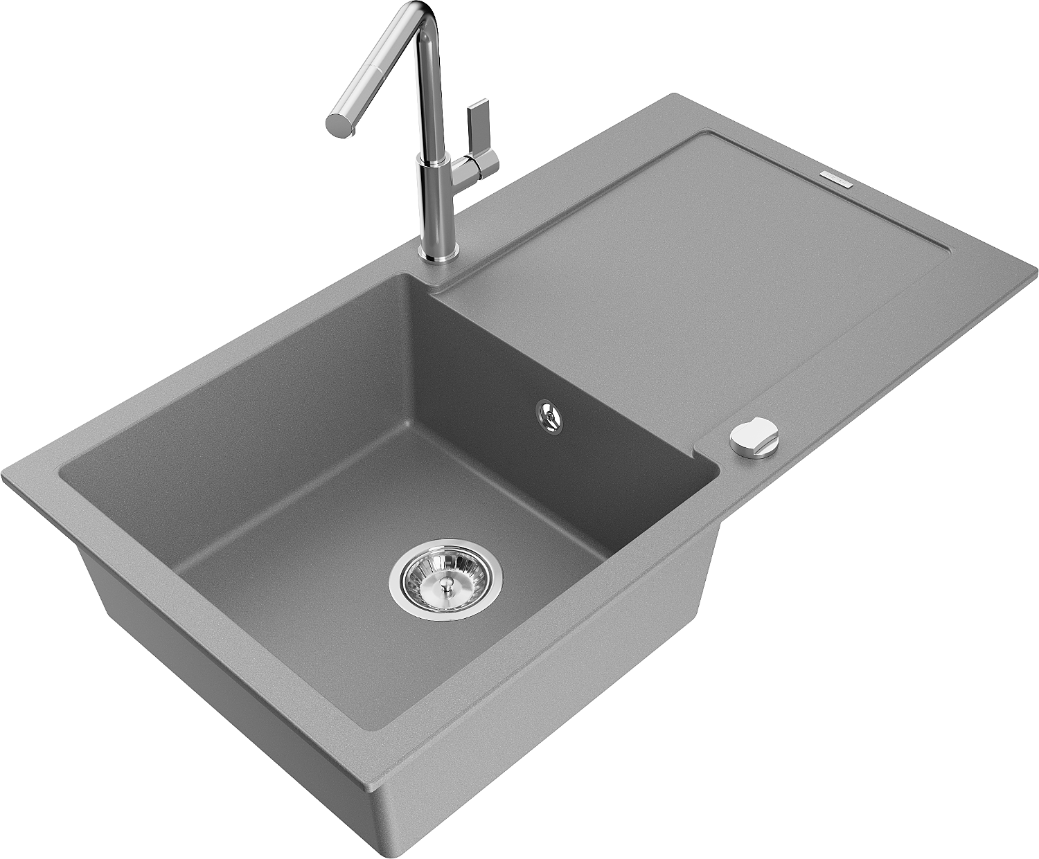 Mexen Leo egymedencés gránit mosogató lefolyóval és Flora konyhai csapteleppel, szürke - 6501-71-670401-00