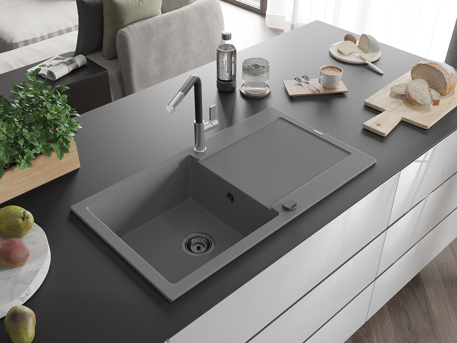 A mosogató magas minőségű gránitból készült. Elegáns, de mindenekelőtt praktikus kiegészítője minden konyhának, függetlenül annak stílusától. A gránit magas minősége és tartóssága hosszú távú használatot biztosít.