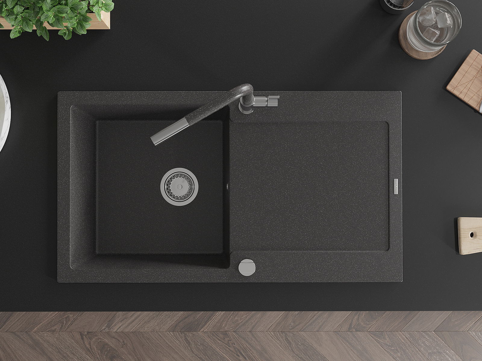 A mosogató kiváló minőségű gránitból készül. Ez egy elegáns és mindenekelőtt minden konyhához praktikus kiegészítés, stílusától függetlenül. A kiváló minőségű és a gránit tartósság biztosítja a sok éves használatát.