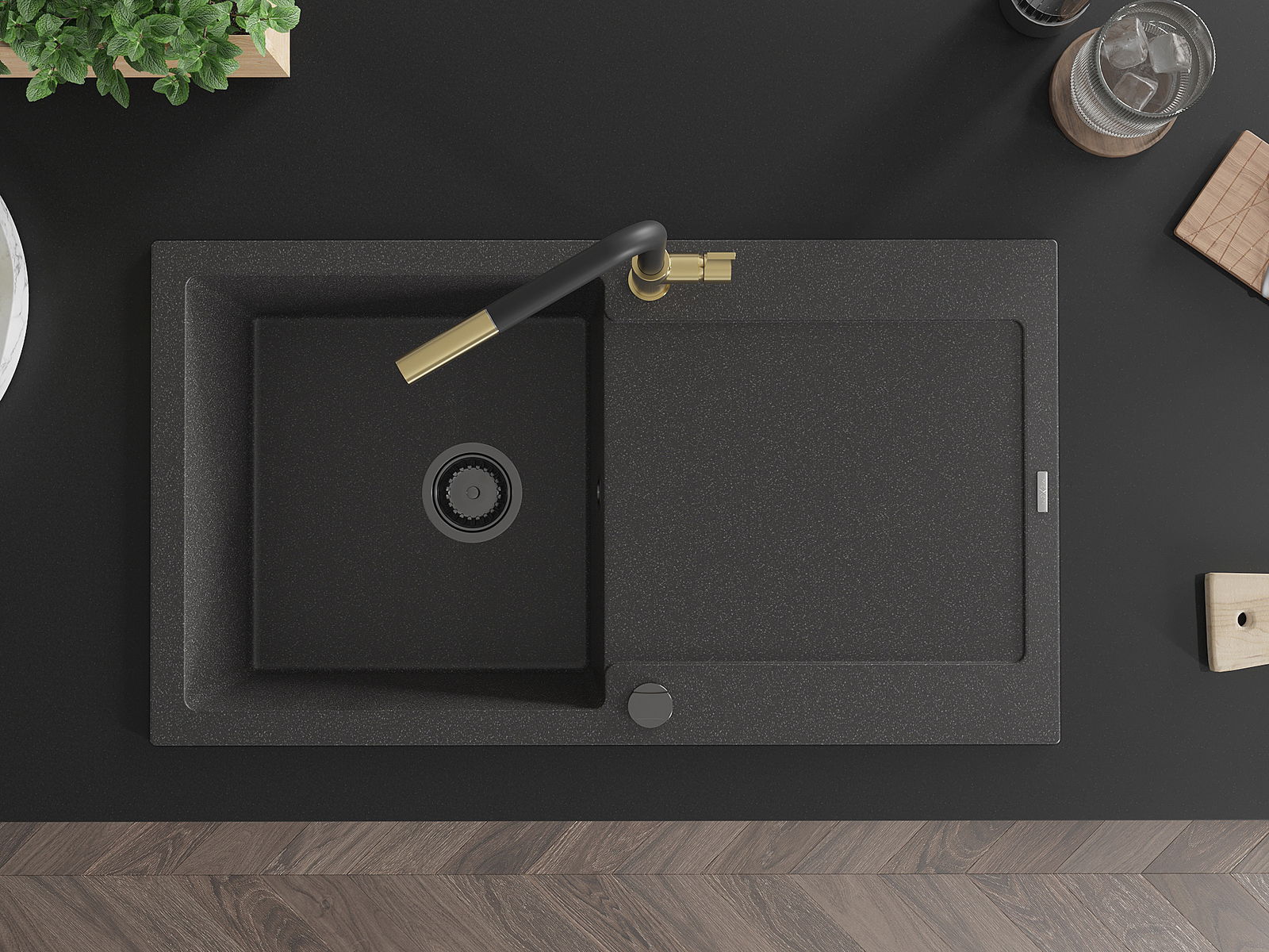 A mosogató kiváló minőségű gránitból készül. Ez egy elegáns és mindenekelőtt minden konyhához praktikus kiegészítés, stílusától függetlenül. A kiváló minőségű és a gránit tartósság biztosítja a sok éves használatát.