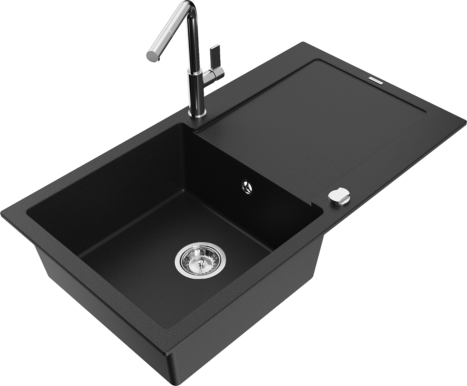 Mexen Leo egymedencés gránit mosogató csepegtetővel és Flora konyhai csapteleppel, fekete - 6501-77-670401-00