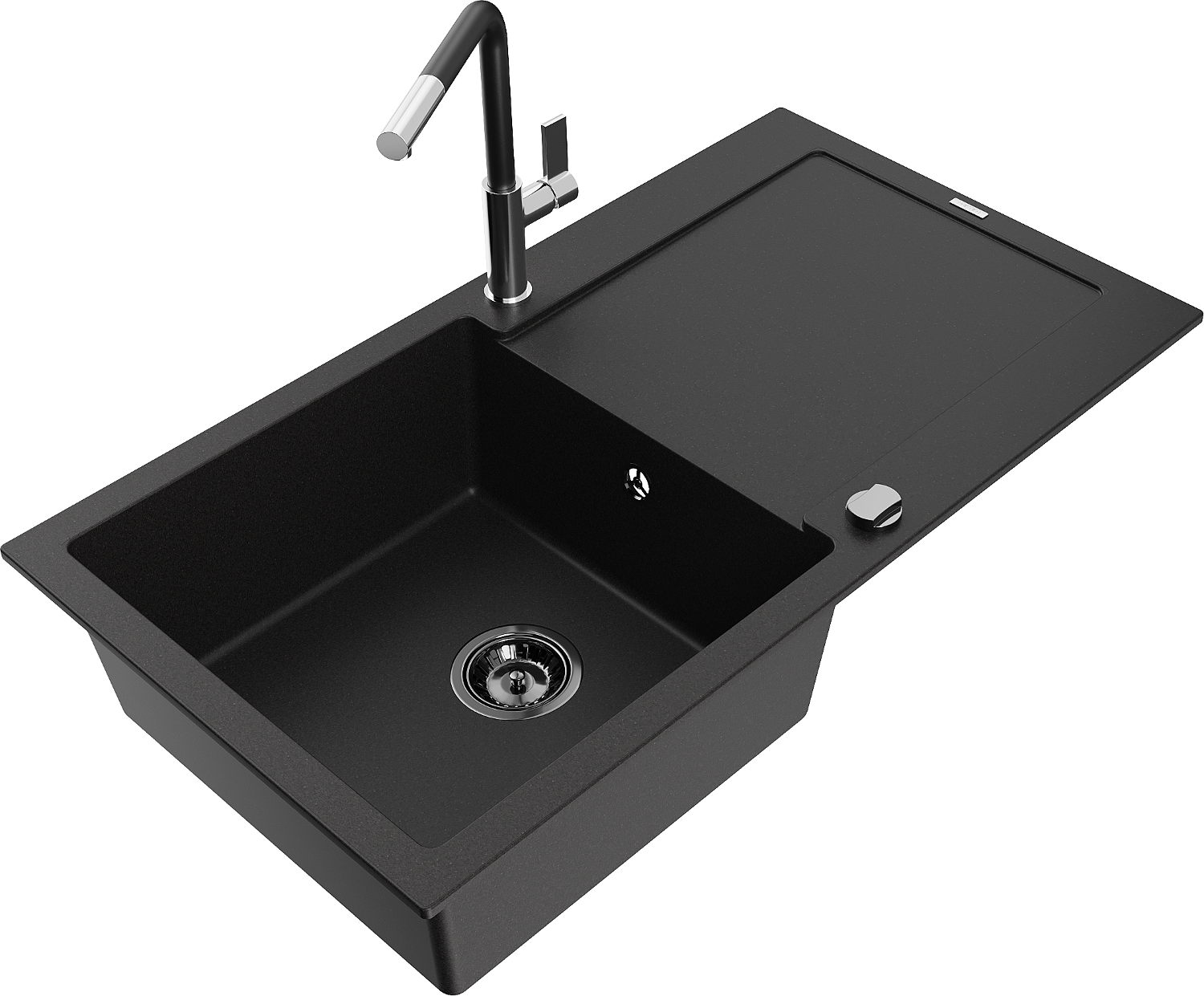 Mexen Leo 1 rekeszes gránit mosogató csepegtetővel és Flora konyhai csappal, fekete - 6501-77-670401-07-B