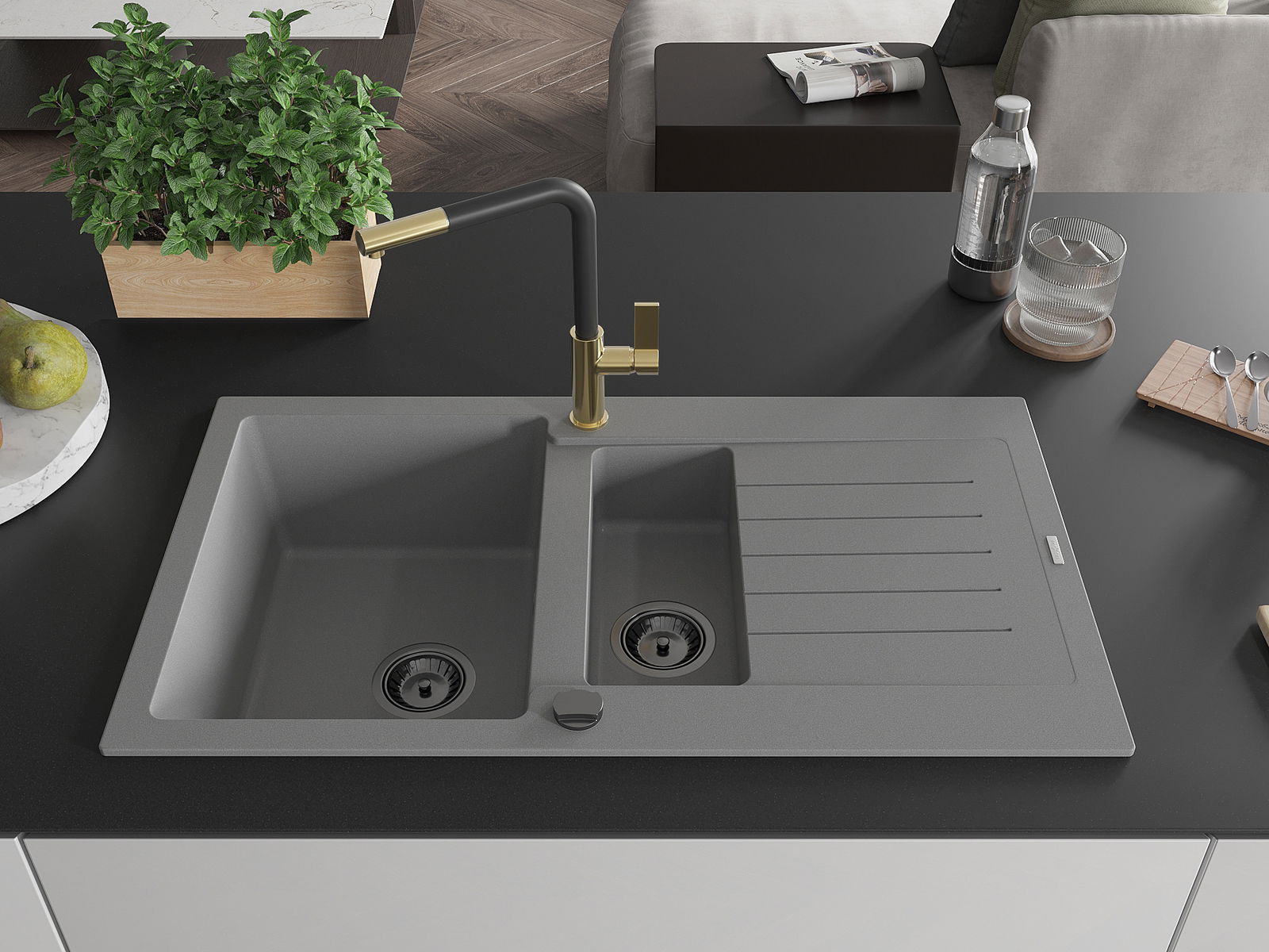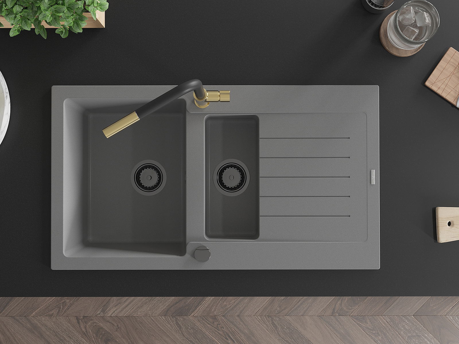 A mosogató kiváló minőségű gránitból készül. Ez egy elegáns és mindenekelőtt minden konyhához praktikus kiegészítés, stílusától függetlenül. A kiváló minőségű és a gránit tartósság biztosítja a sok éves használatát.