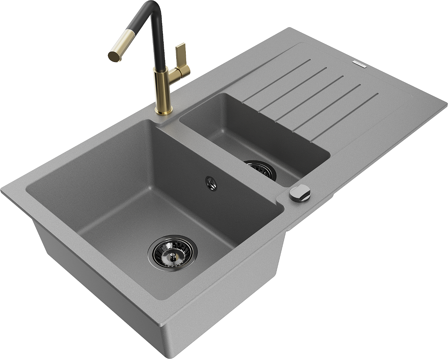 Mexen Matias gránit mosogató 1,5 medencés csepegtetővel és Flora konyhai csapteleppel, szürke - 6502-71-670401-57-B