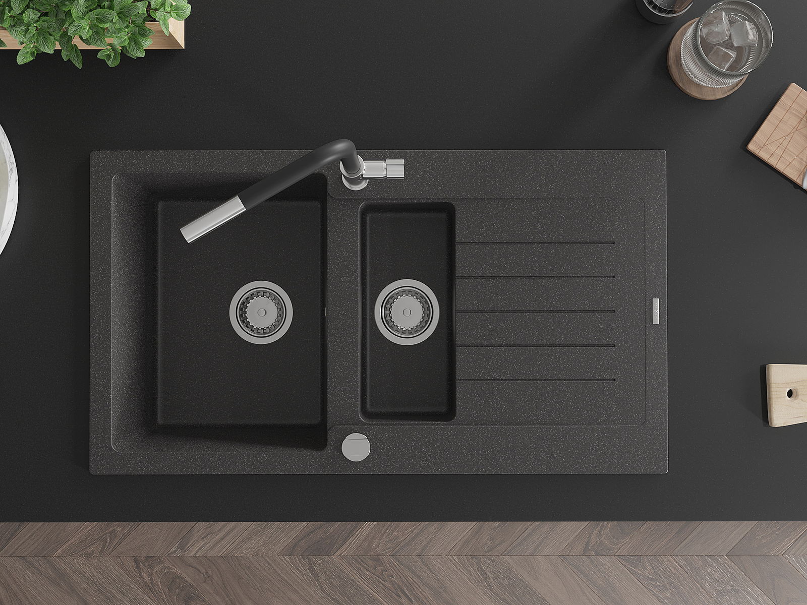 A mosogató magas minőségű gránitból készült. Elegáns, de mindenekelőtt praktikus kiegészítője minden konyhának, függetlenül annak stílusától. A gránit magas minősége és tartóssága hosszú távú használatot biztosít.