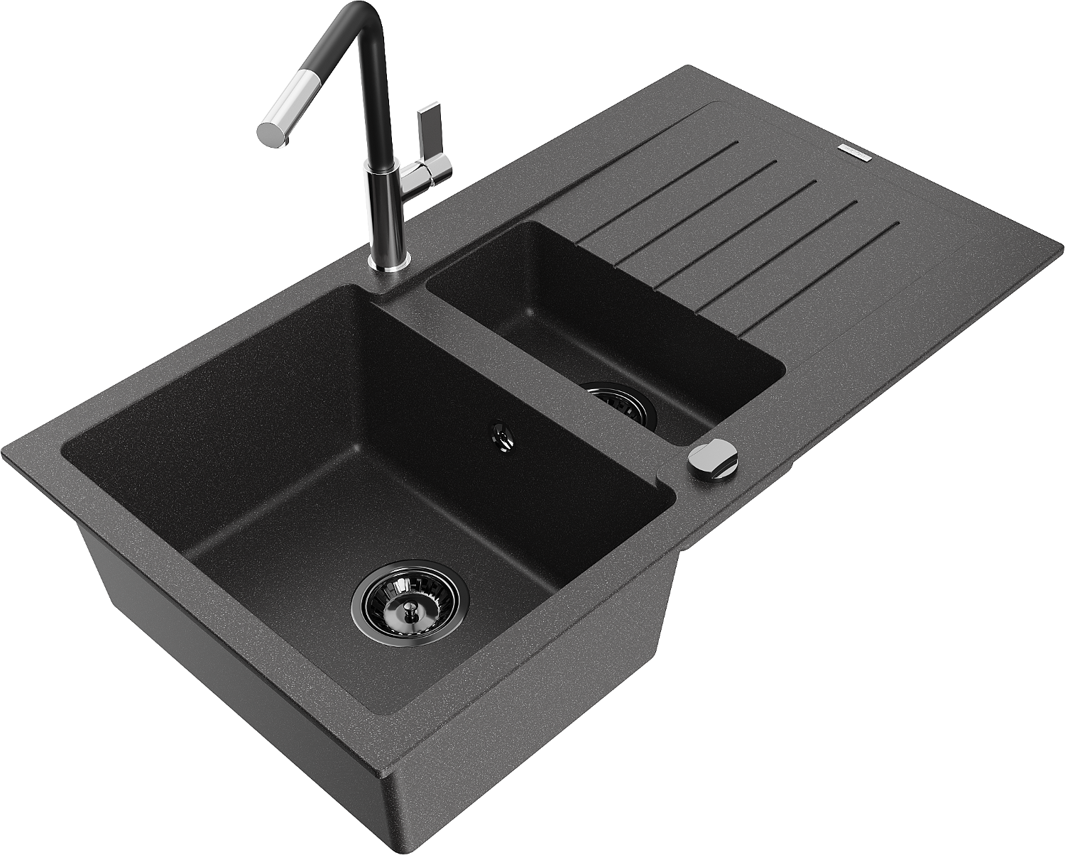 Mexen Matias gránit mosogató 1,5-medencés, csepegtetős és Flora konyhai csapteleppel, fekete pöttyös - 6502-76-670401-07-B