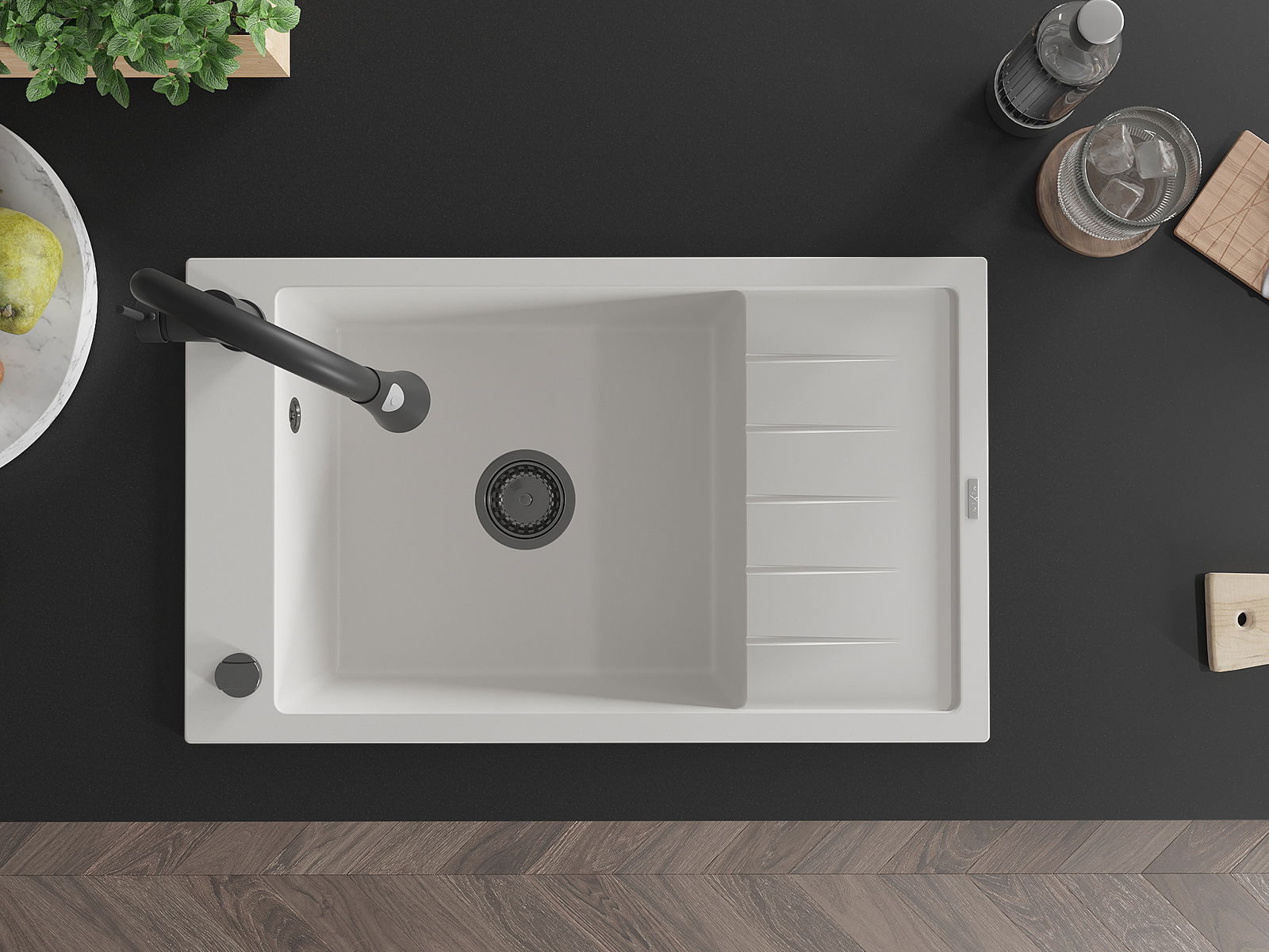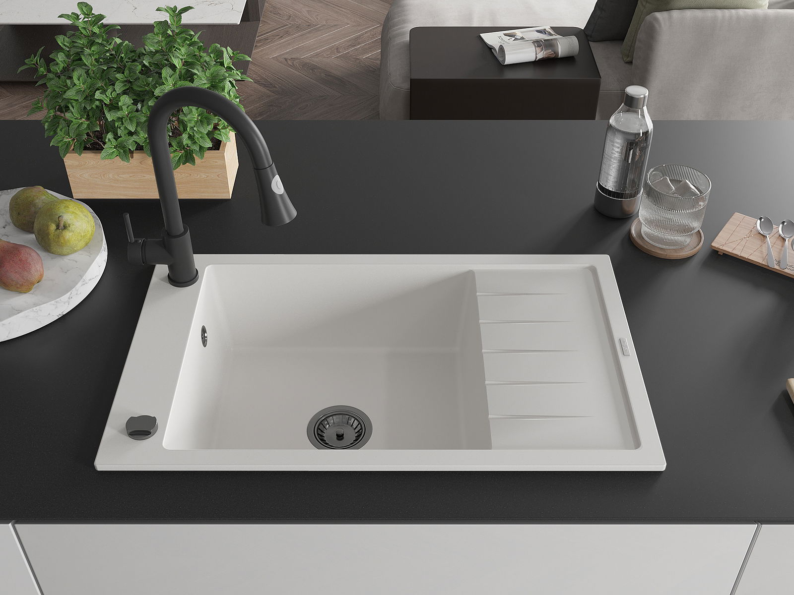Mexen Elias egymedencés gránit mosogató csepegtetővel és Elia konyhai csapteleppel, fehér - 6511-20-670101-70