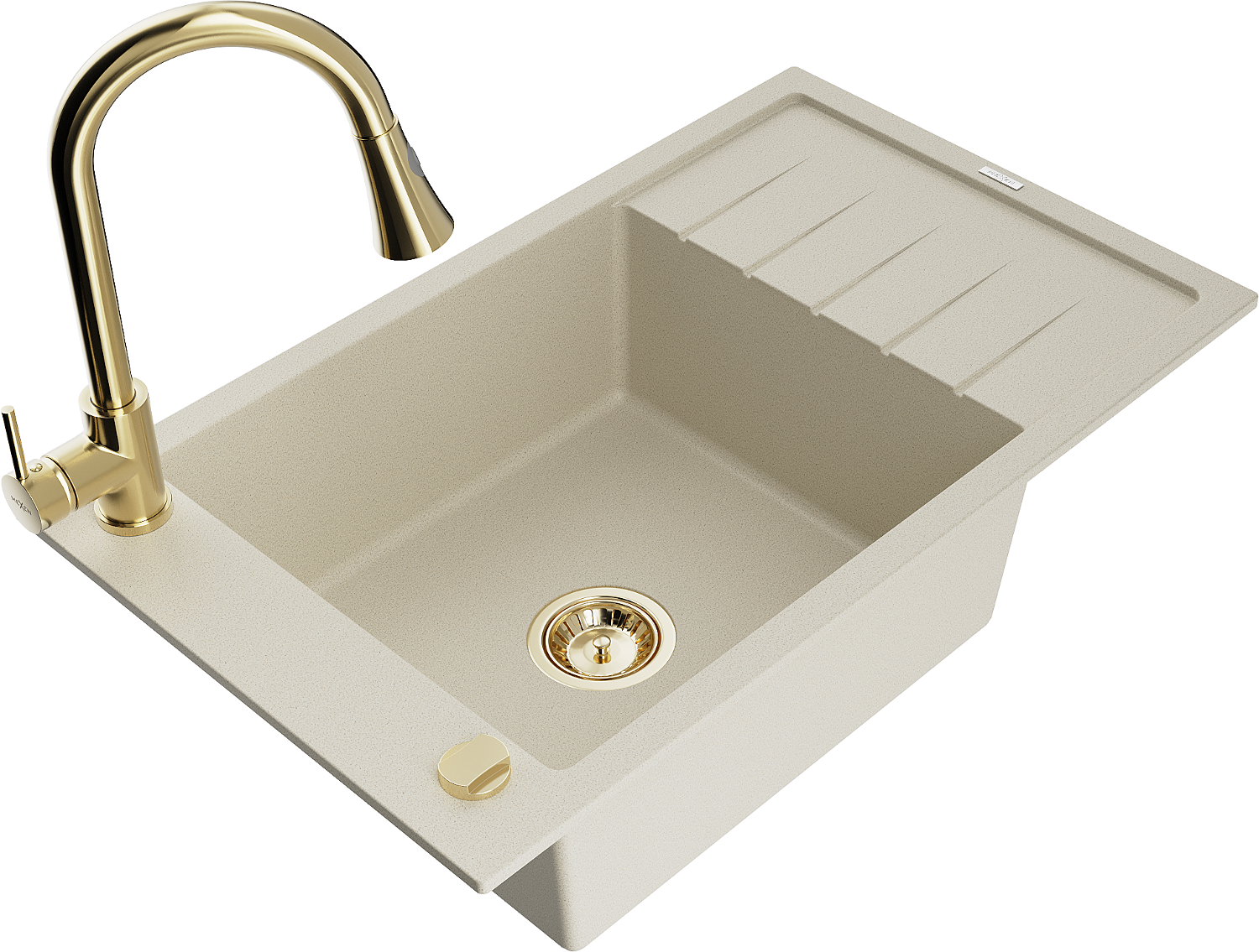 Mexen Elias 1-medencés gránit mosogató csepegtetővel és konyhai csapteleppel Elia, bézs - 6511-69-670101-50