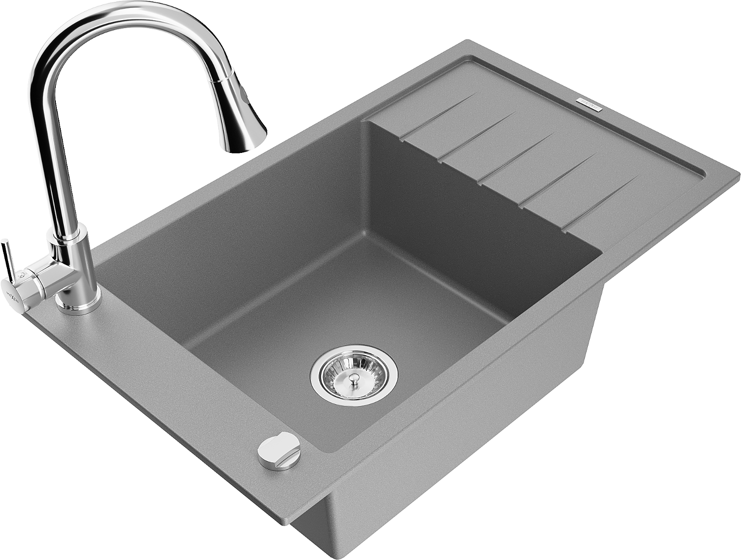 Mexen Elias gránit egytálcás mosogató, csepegtetővel és Elia konyhai csapteleppel, szürke - 6511-71-670101-00