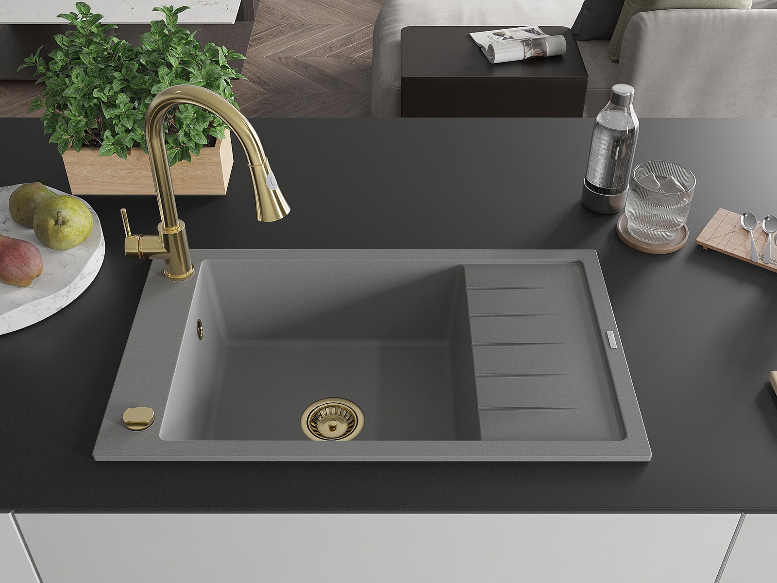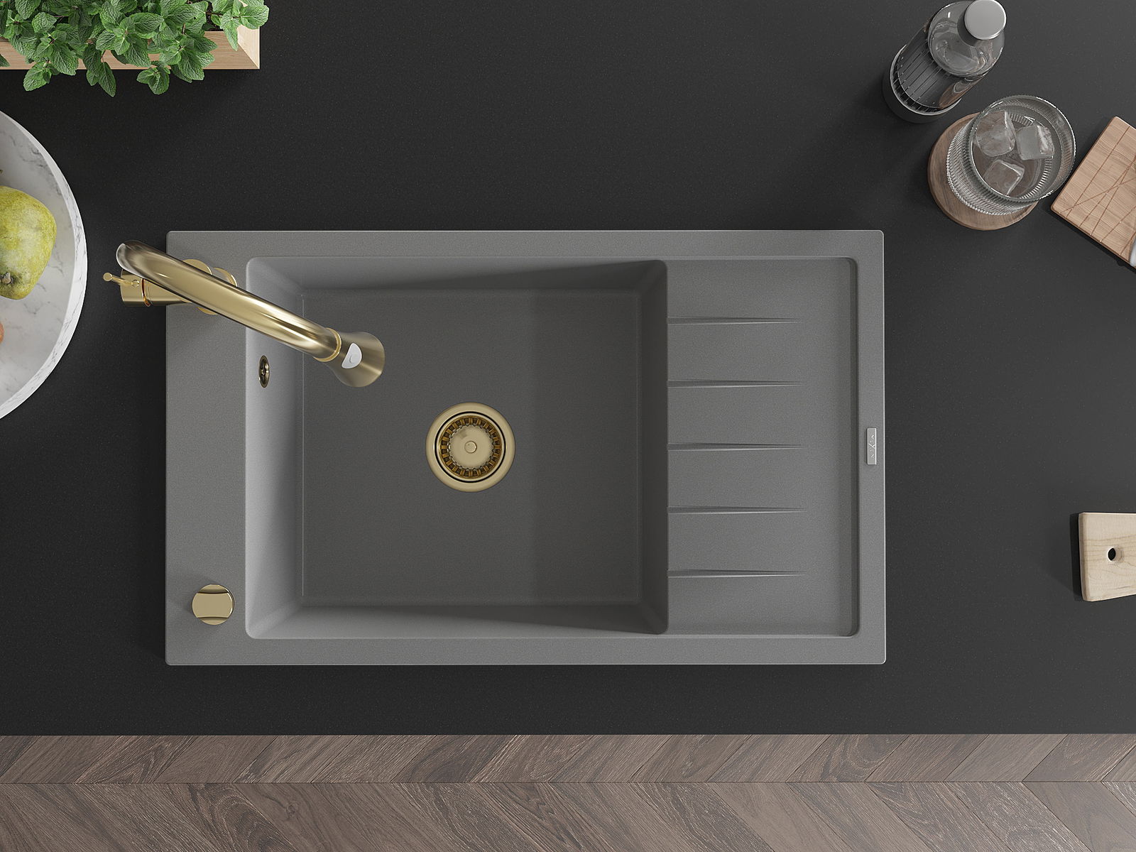 A mosogató kiváló minőségű gránitból készül. Ez egy elegáns és mindenekelőtt minden konyhához praktikus kiegészítés, stílusától függetlenül. A kiváló minőségű és a gránit tartósság biztosítja a sok éves használatát.