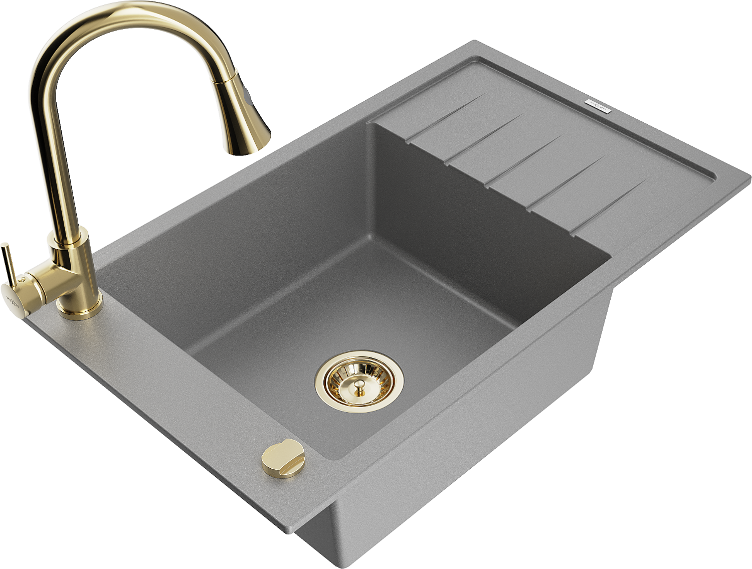 Mexen Elias 1-medencés gránit mosogató csepegtetővel és Elia konyhai csapteleppel, szürke - 6511-71-670101-50