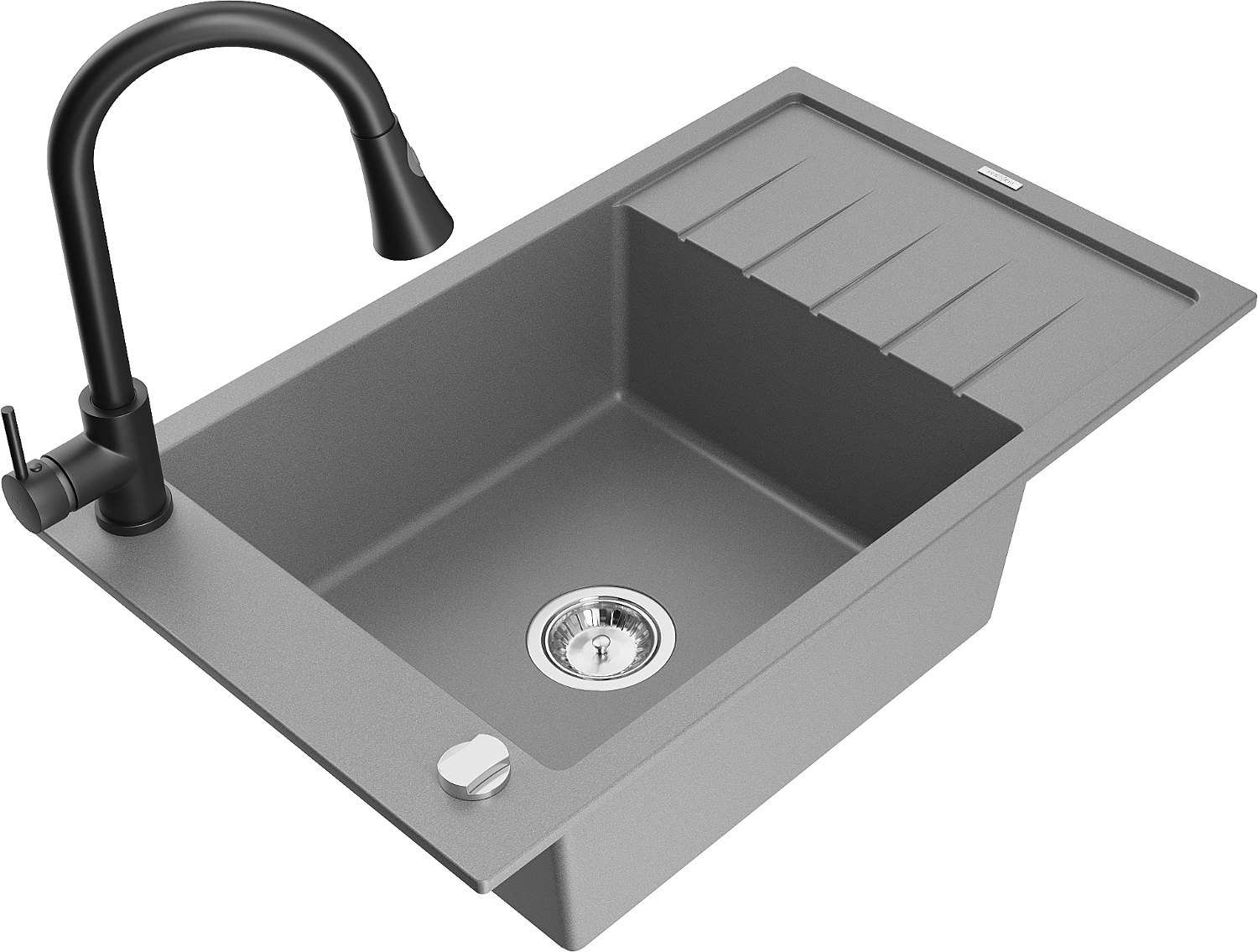 Mexen Elias egymedencés gránit mosogató csepegtetővel és Elia konyhai csapteleppel, szürke - 6511-71-670101-70