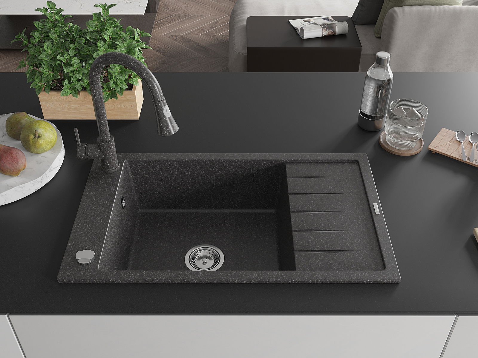 A mosogató kiváló minőségű gránitból készül. Ez egy elegáns és mindenekelőtt minden konyhához praktikus kiegészítés, stílusától függetlenül. A kiváló minőségű és a gránit tartósság biztosítja a sok éves használatát.