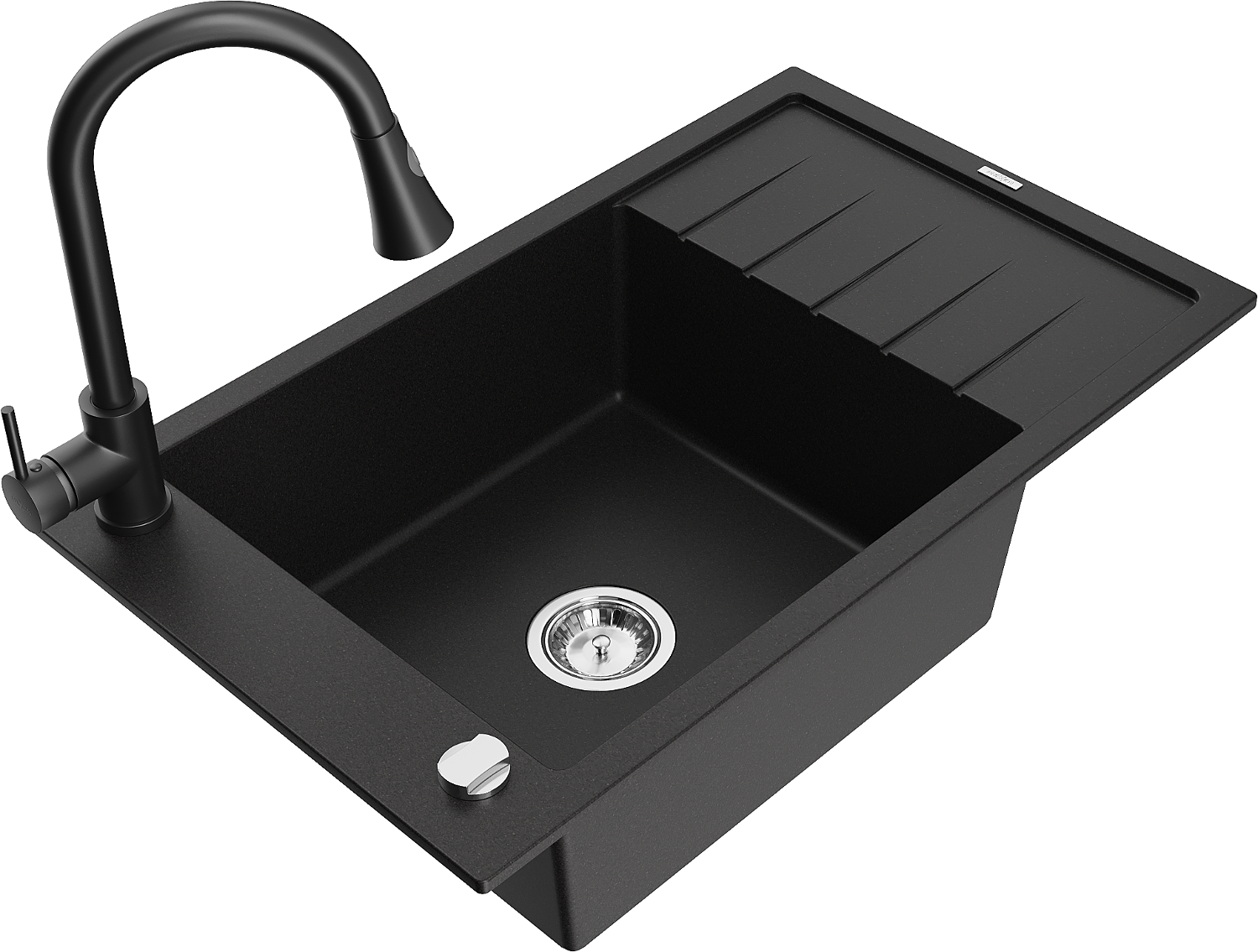 Mexen Elias gránit mosogató 1-medencés csepegtetővel és Elia konyhai csapteleppel, fekete - 6511-77-670101-70