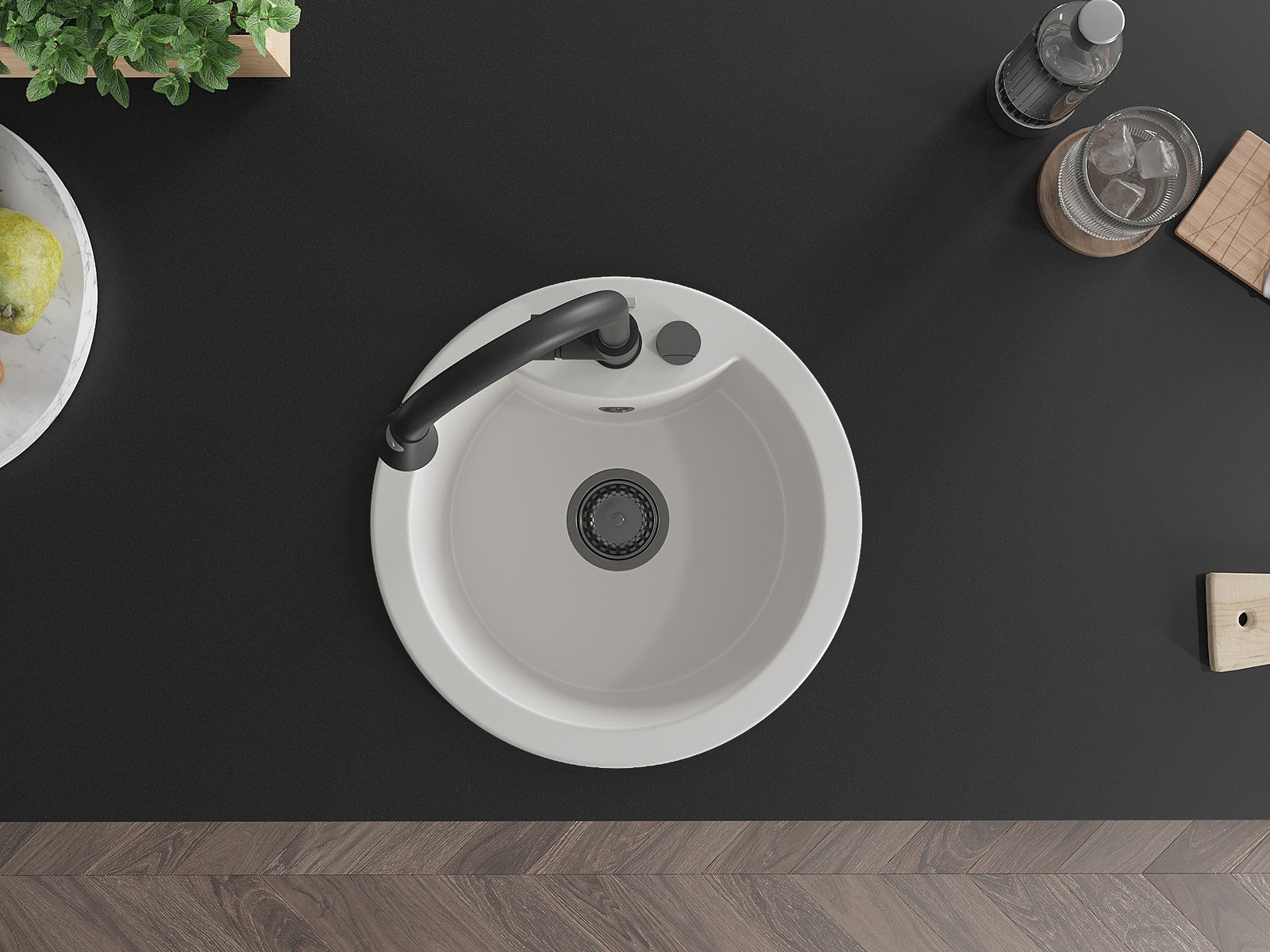 A mosogató kiváló minőségű gránitból készül. Ez egy elegáns és mindenekelőtt minden konyhához praktikus kiegészítés, stílusától függetlenül. A kiváló minőségű és a gránit tartósság biztosítja a sok éves használatát.