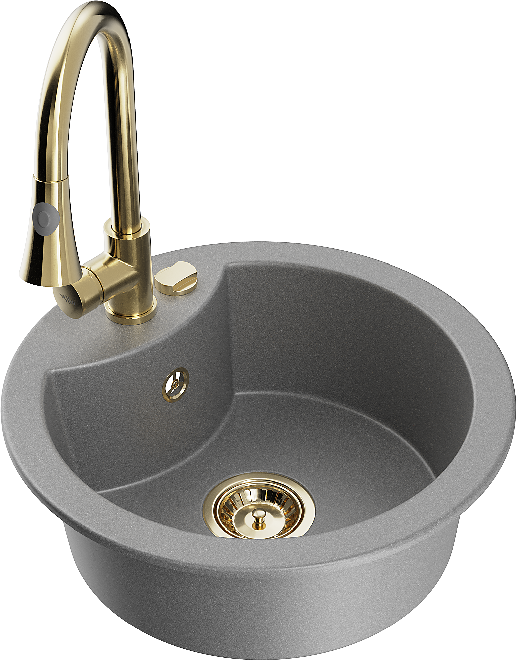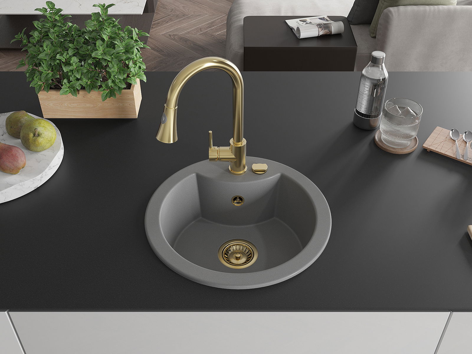 Mexen Diego gránit mosogató 1-medencés Elia konyhai csapteleppel, szürke - 6512-71-670101-50