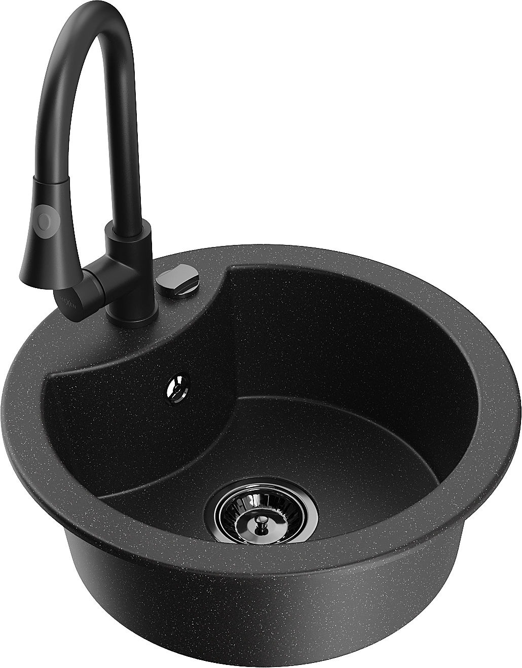 Mexen Diego gránit egymedencés mosogató Elia konyhai csappal, fekete/ezüst metál - 6512-73-670101-70-B