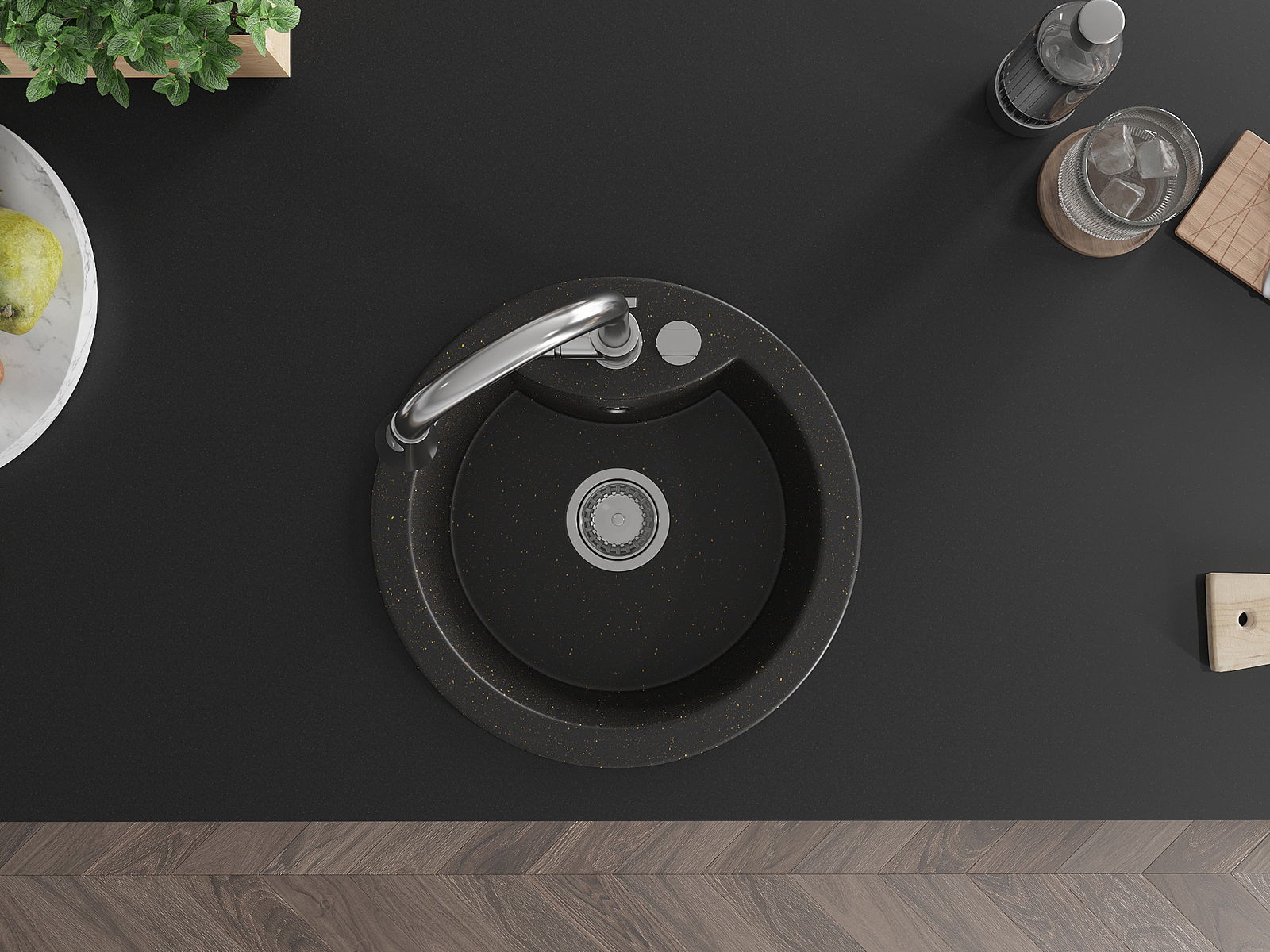 A mosogató kiváló minőségű gránitból készül. Ez egy elegáns és mindenekelőtt minden konyhához praktikus kiegészítés, stílusától függetlenül. A kiváló minőségű és a gránit tartósság biztosítja a sok éves használatát.