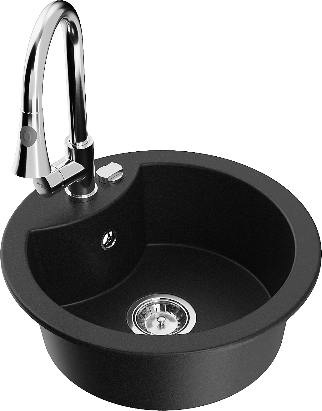 Mexen Diego egymedencés gránitmosogató Elia konyhai csapteleppel, fekete - 6512-77-670101-00