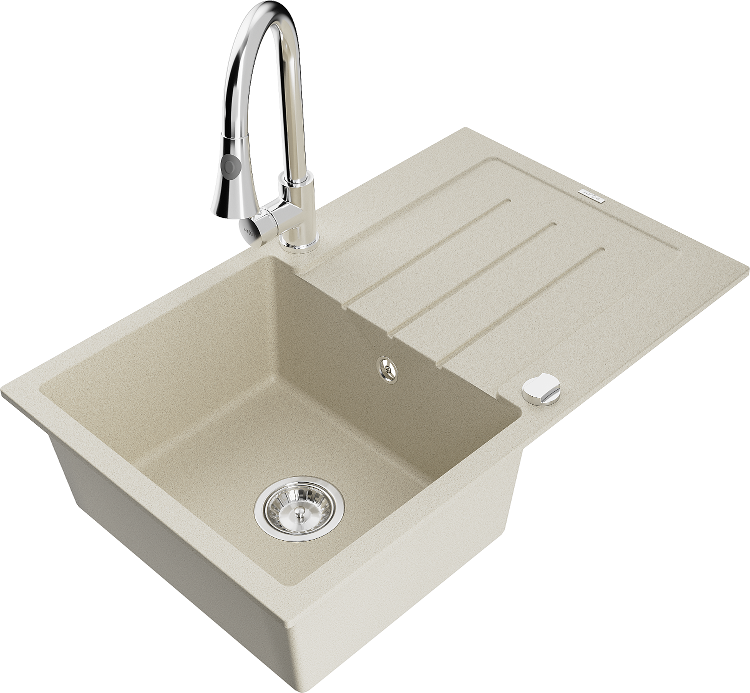 Mexen Bruno egymedencés gránit mosogató csepegtetővel és Elia konyhai csapteleppel, bézs - 6513-69-670101-00