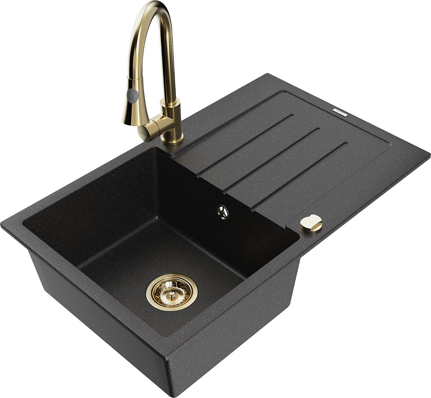 Mexen Bruno gránit mosogató 1 rekeszes csepegtetővel és Elia konyhai csapteleppel, fekete/ezüst metál - 6513-73-670101-50