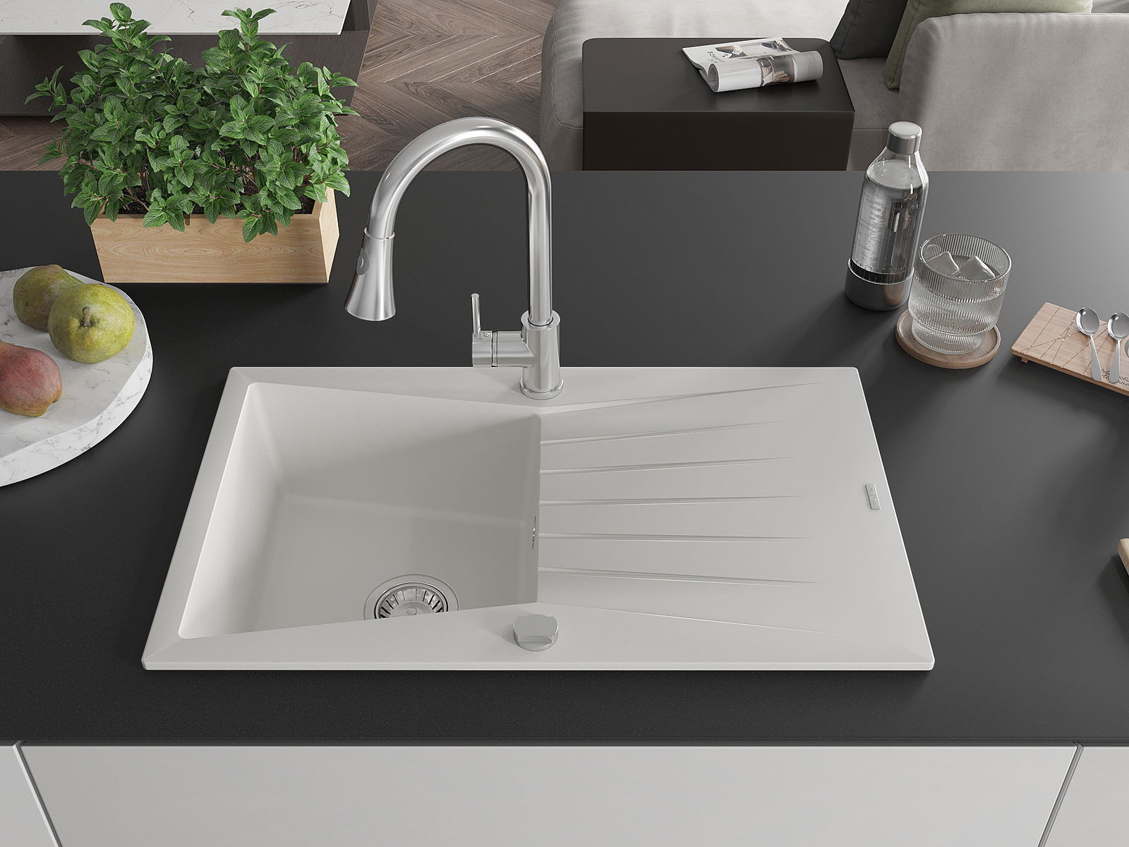 A mosogató felülete ellenáll a foltoknak és a elszíneződésnek, amelynek köszönhetően könnyű megtisztítani és hosszú ideig megtartja színét. Esztétikai és gyakorlatilag kiegészítve minden konyhát.