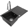A mosogató kiváló minőségű gránitból készül. Ez egy elegáns és mindenekelőtt minden konyhához praktikus kiegészítés, stílusától függetlenül. A kiváló minőségű és a gránit tartósság biztosítja a sok éves használatát.
