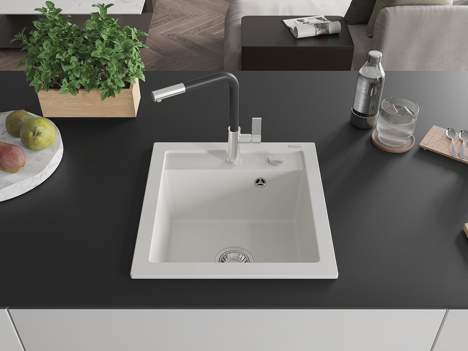 A mosogató kiváló minőségű gránitból készül. Ez egy elegáns és mindenekelőtt minden konyhához praktikus kiegészítés, stílusától függetlenül. A kiváló minőségű és a gránit tartósság biztosítja a sok éves használatát.