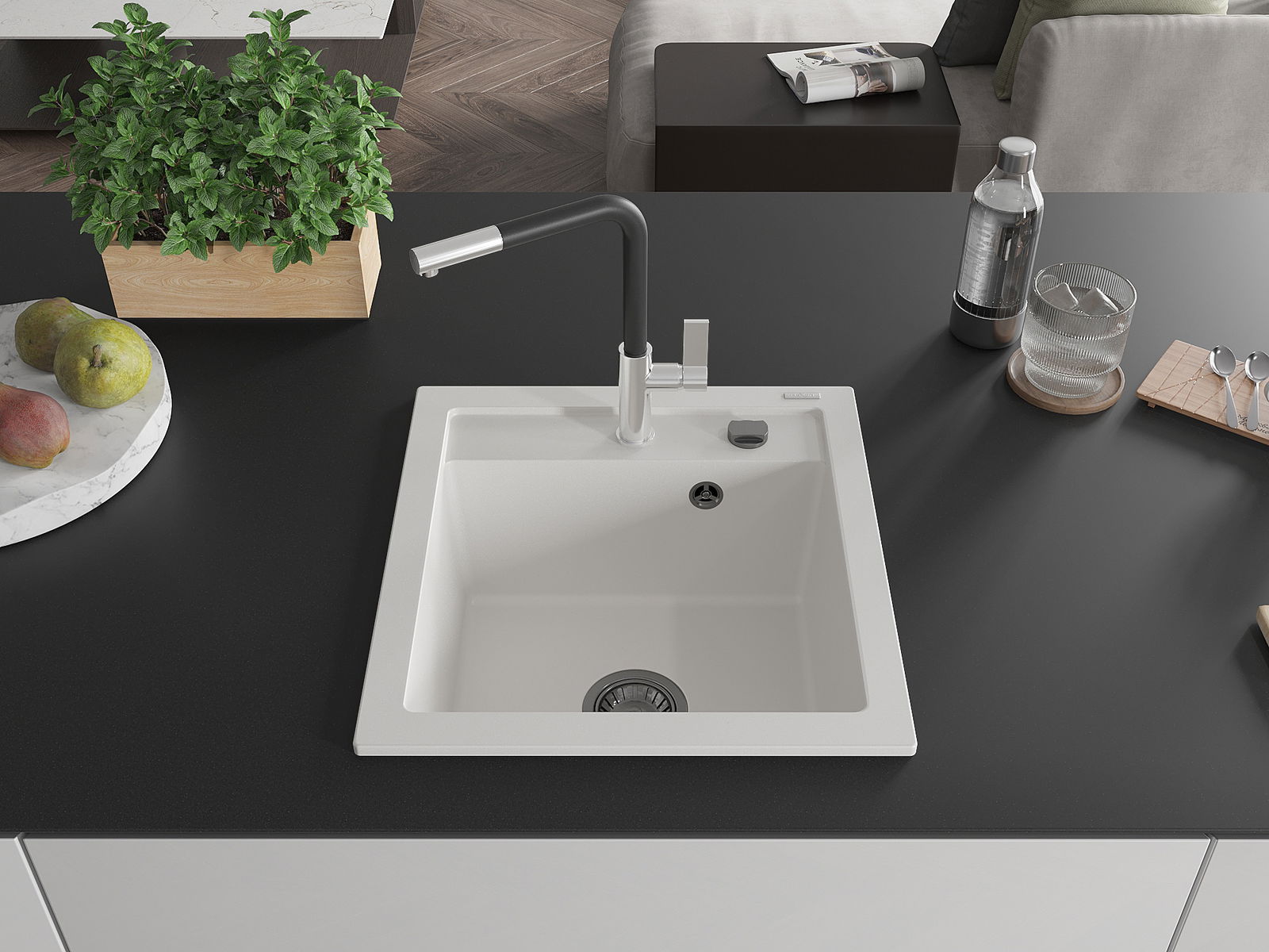 A mosogató kiváló minőségű gránitból készül. Ez egy elegáns és mindenekelőtt minden konyhához praktikus kiegészítés, stílusától függetlenül. A kiváló minőségű és a gránit tartósság biztosítja a sok éves használatát.