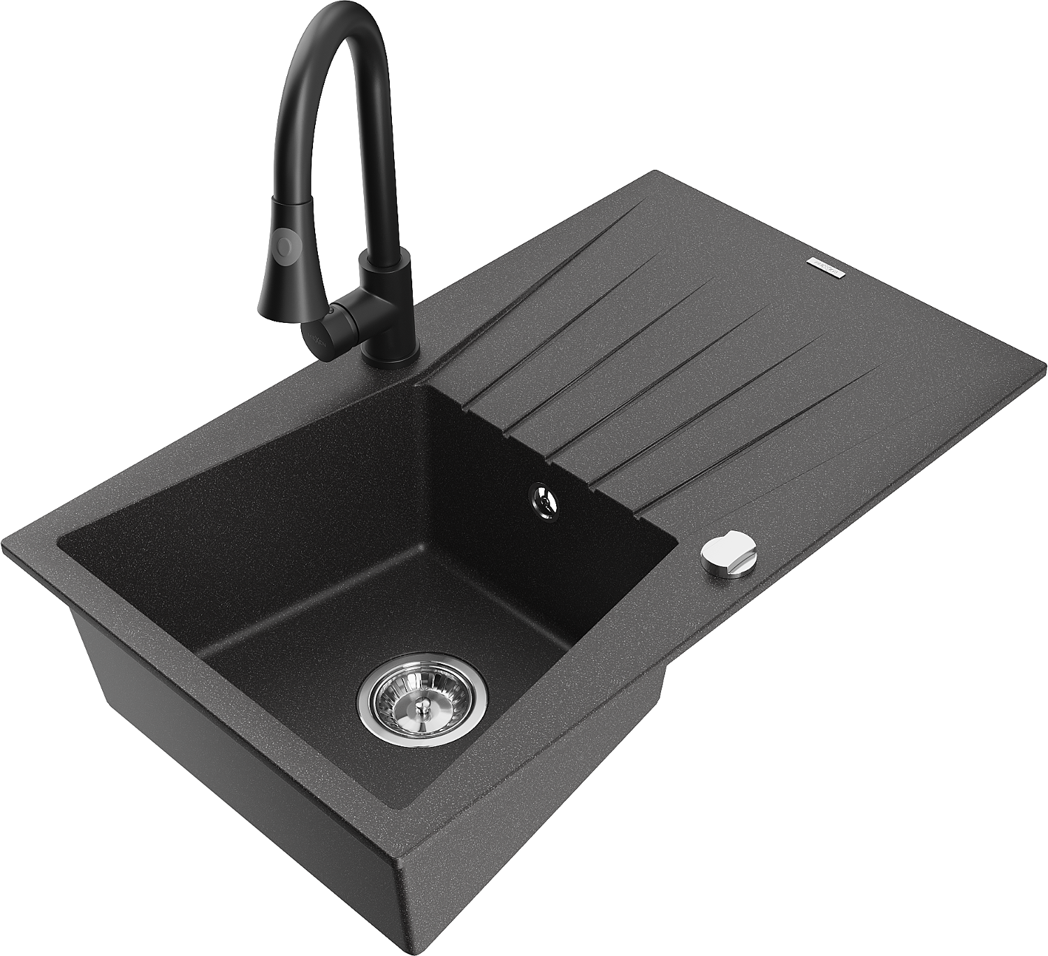 A mosogató kiváló minőségű gránitból készül. Ez egy elegáns és mindenekelőtt minden konyhához praktikus kiegészítés, stílusától függetlenül. A kiváló minőségű és a gránit tartósság biztosítja a sok éves használatát.