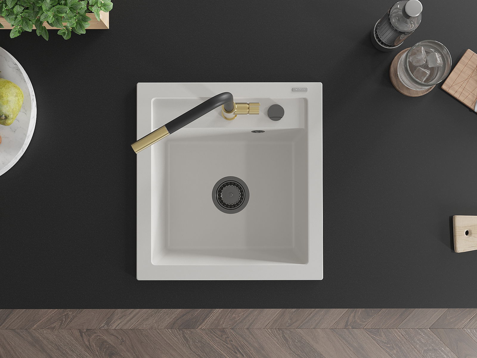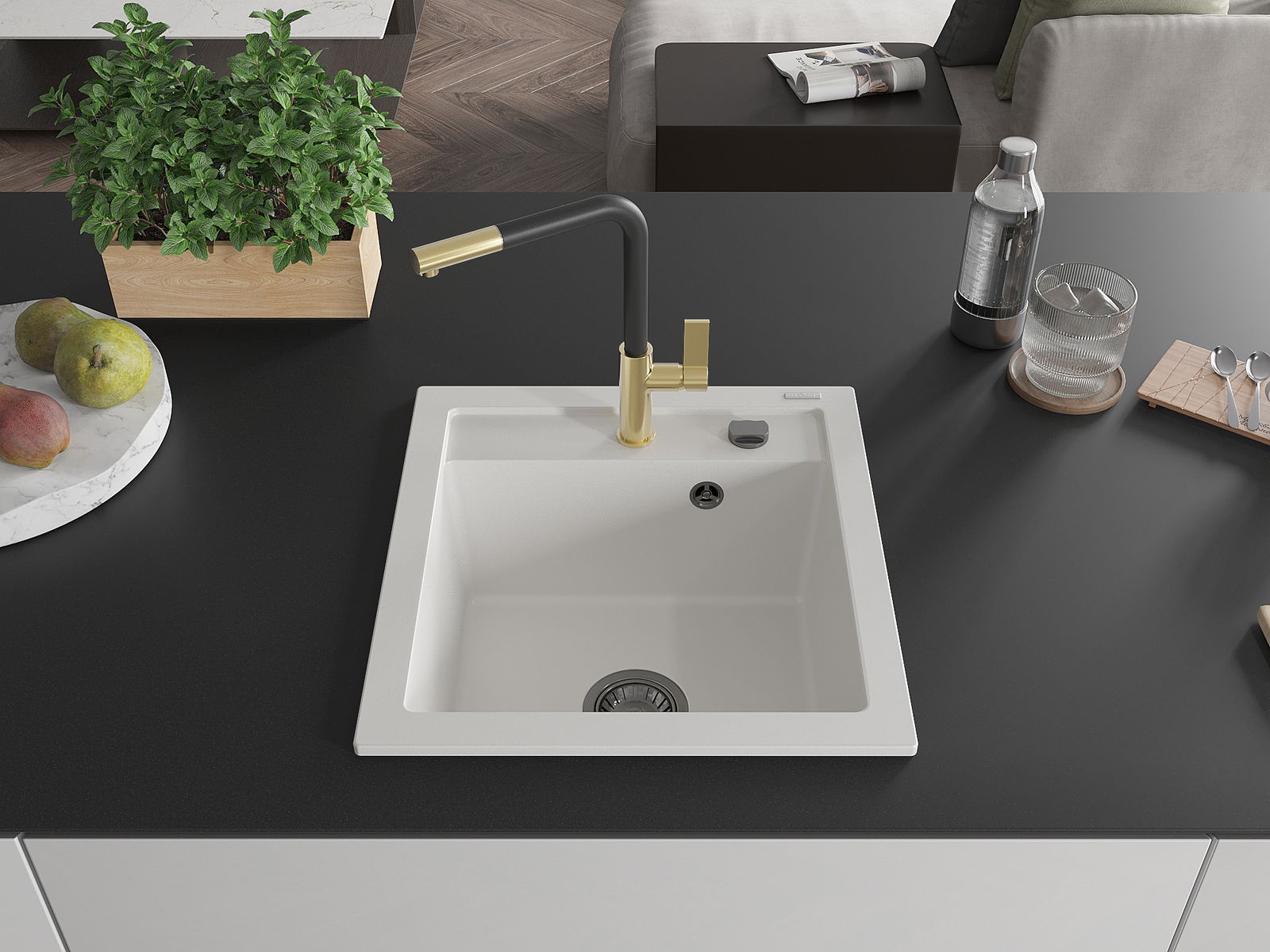 A mosogató kiváló minőségű gránitból készül. Ez egy elegáns és mindenekelőtt minden konyhához praktikus kiegészítés, stílusától függetlenül. A kiváló minőségű és a gránit tartósság biztosítja a sok éves használatát.