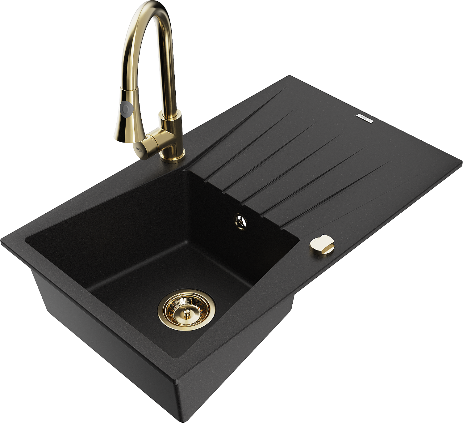 Mexen Cesar 1-medencés gránit mosogató lefolyóval és Elia konyhai csapteleppel, fekete - 6514-77-670101-50