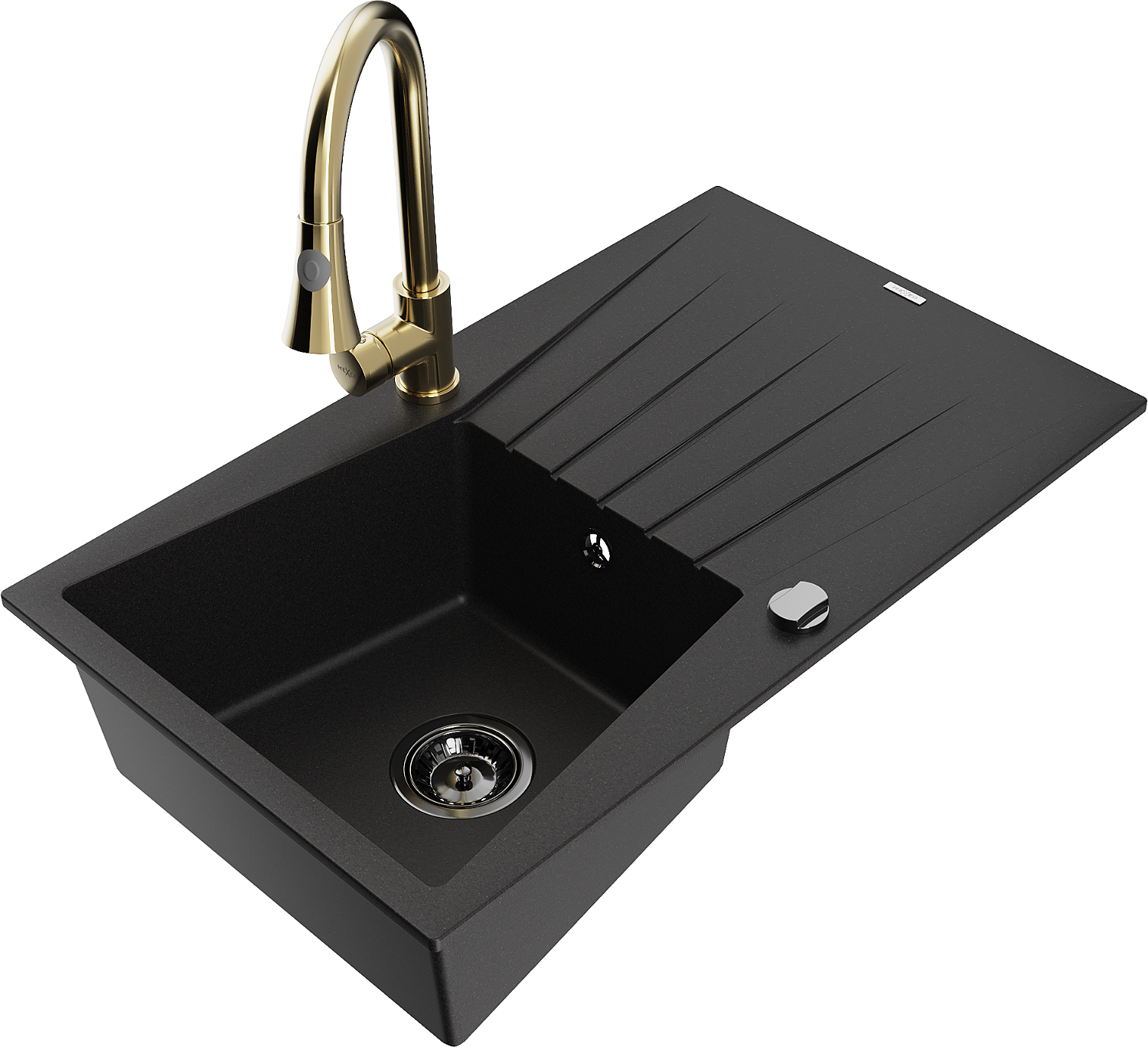 Mexen Cesar egymedencés gránit mosogató csepegtetővel és Elia konyhai csapteleppel, fekete - 6514-77-670101-50-B