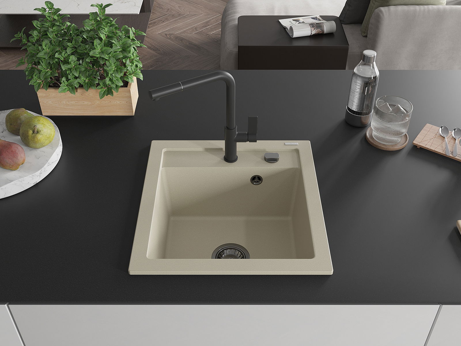 A mosogató kiváló minőségű gránitból készül. Ez egy elegáns és mindenekelőtt minden konyhához praktikus kiegészítés, stílusától függetlenül. A kiváló minőségű és a gránit tartósság biztosítja a sok éves használatát.