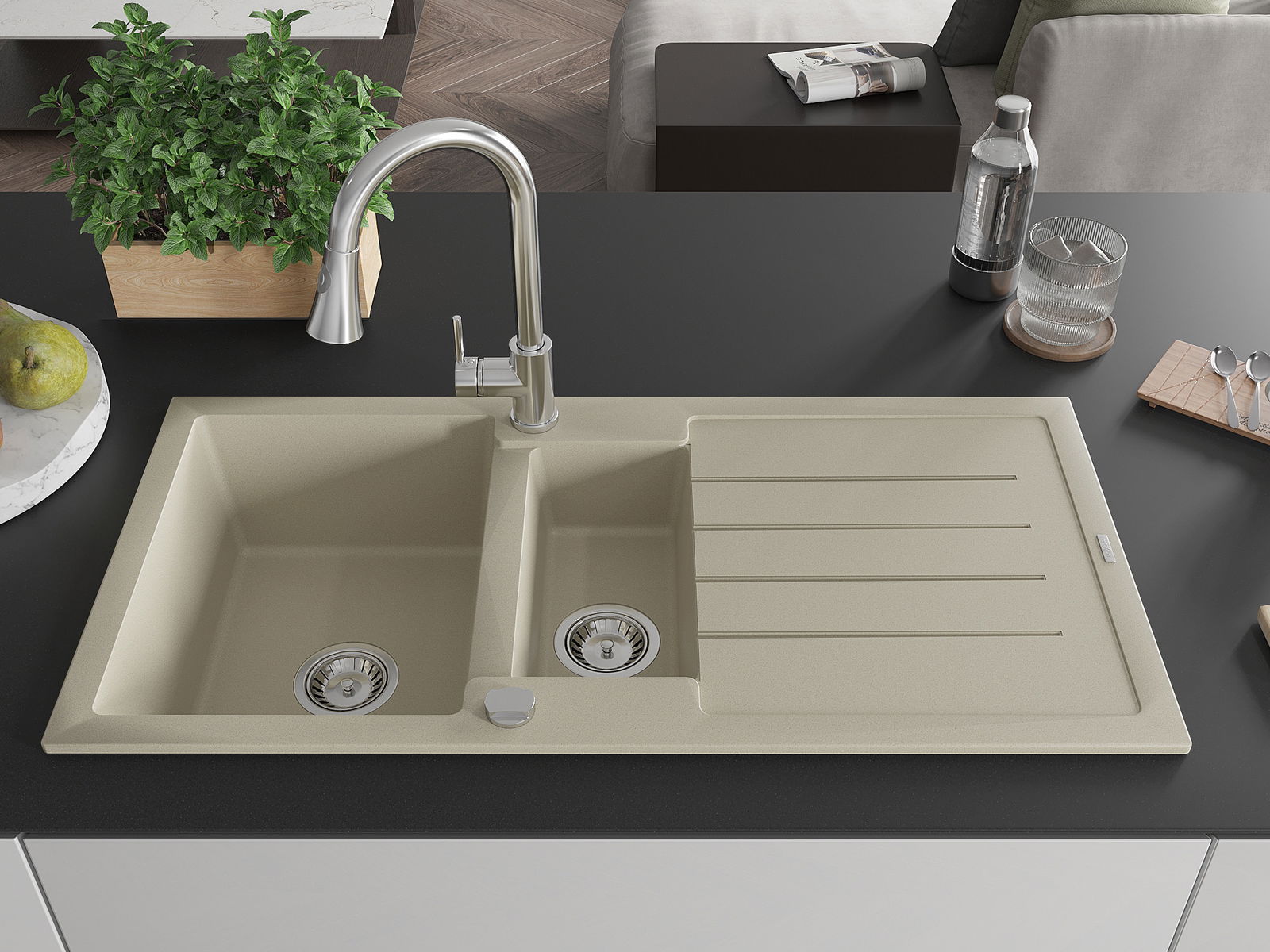 Mexen Andres 1,5-medencés gránit mosogató csepegtetővel és Elia konyhai csapteleppel, bézs - 6515-69-670101-00