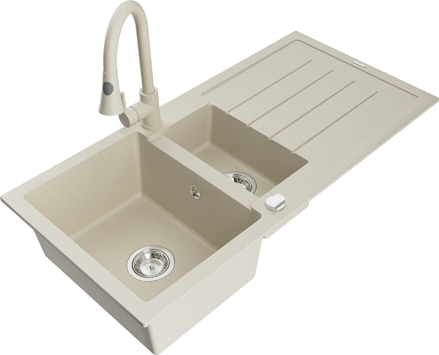 Mexen Andres 1,5 rekeszes gránit mosogatótálca csepegtetővel és Elia konyhai csapteleppel, bézs - 6515-69-670101-69