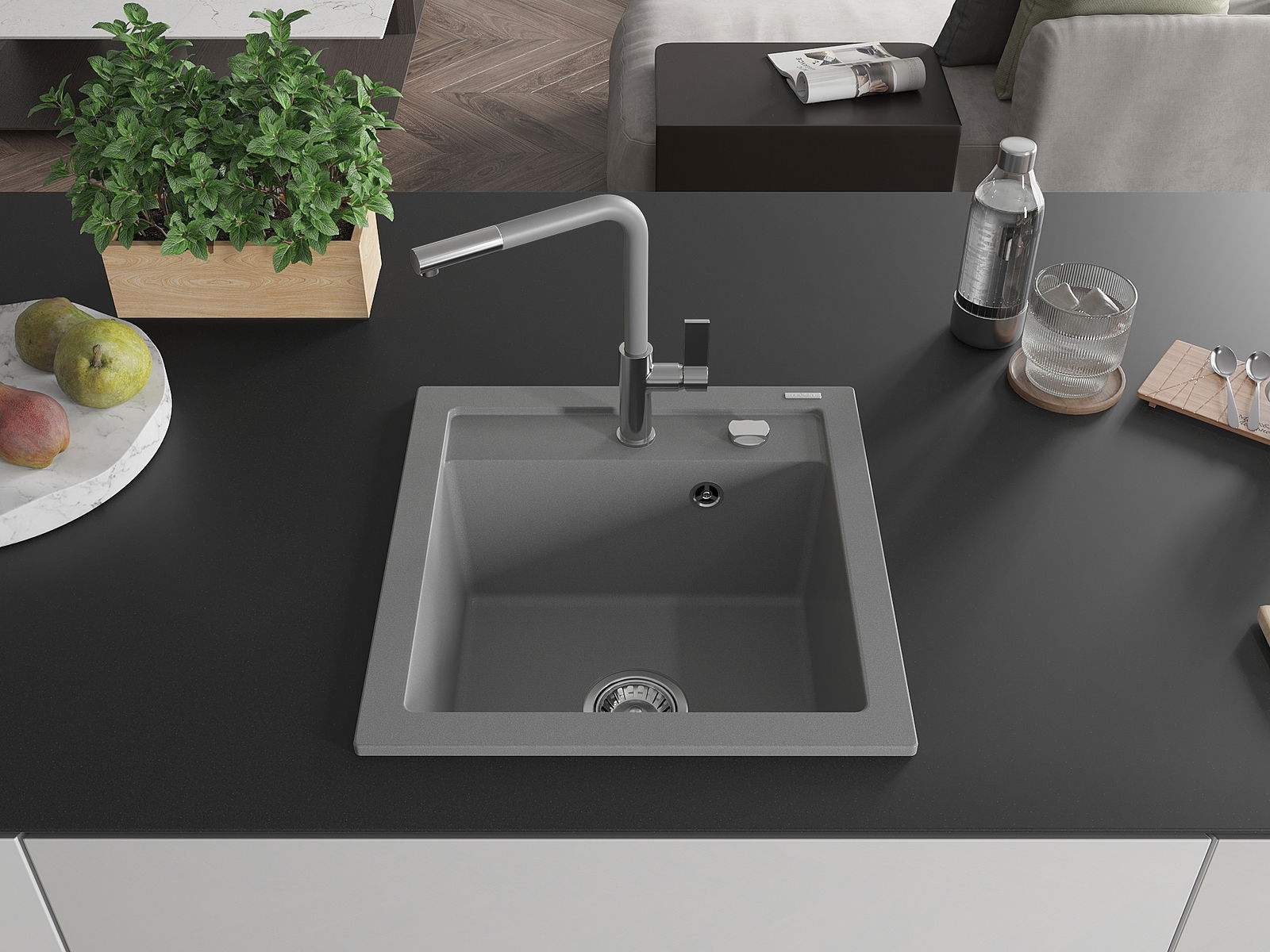 A mosogató kiváló minőségű gránitból készül. Ez egy elegáns és mindenekelőtt minden konyhához praktikus kiegészítés, stílusától függetlenül. A kiváló minőségű és a gránit tartósság biztosítja a sok éves használatát.
