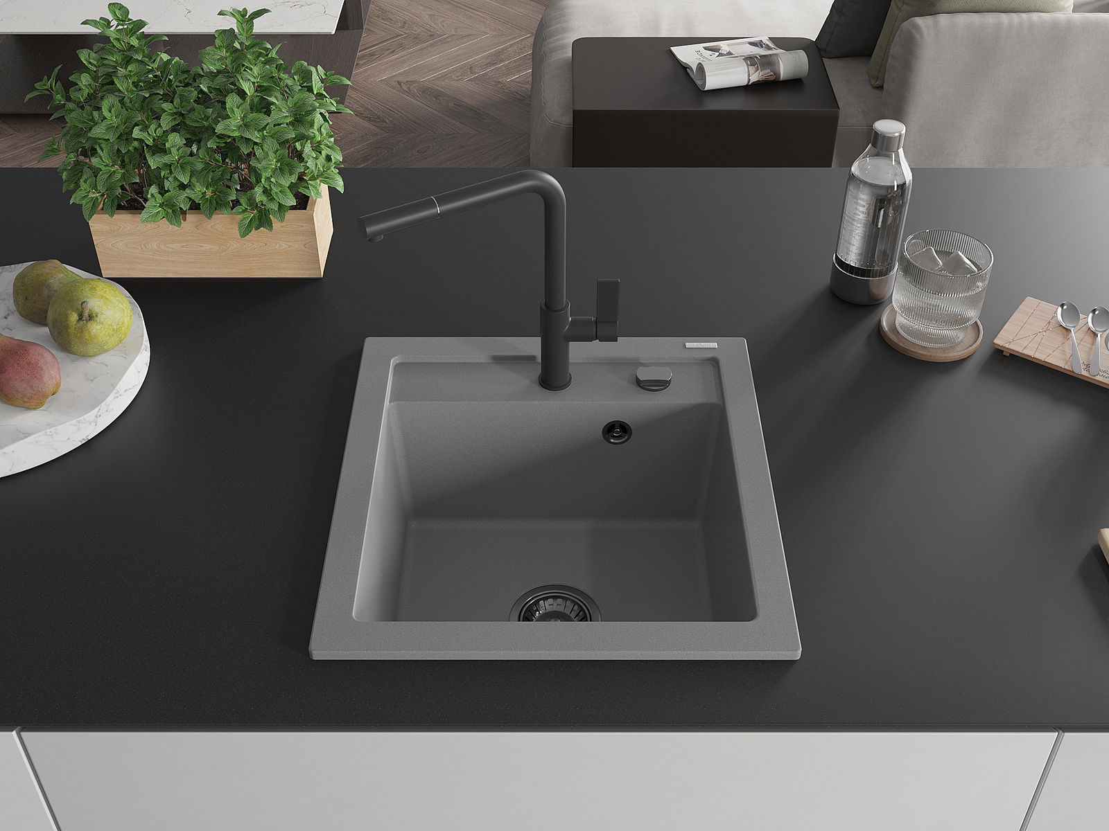 A mosogató kiváló minőségű gránitból készül. Ez egy elegáns és mindenekelőtt minden konyhához praktikus kiegészítés, stílusától függetlenül. A kiváló minőségű és a gránit tartósság biztosítja a sok éves használatát.